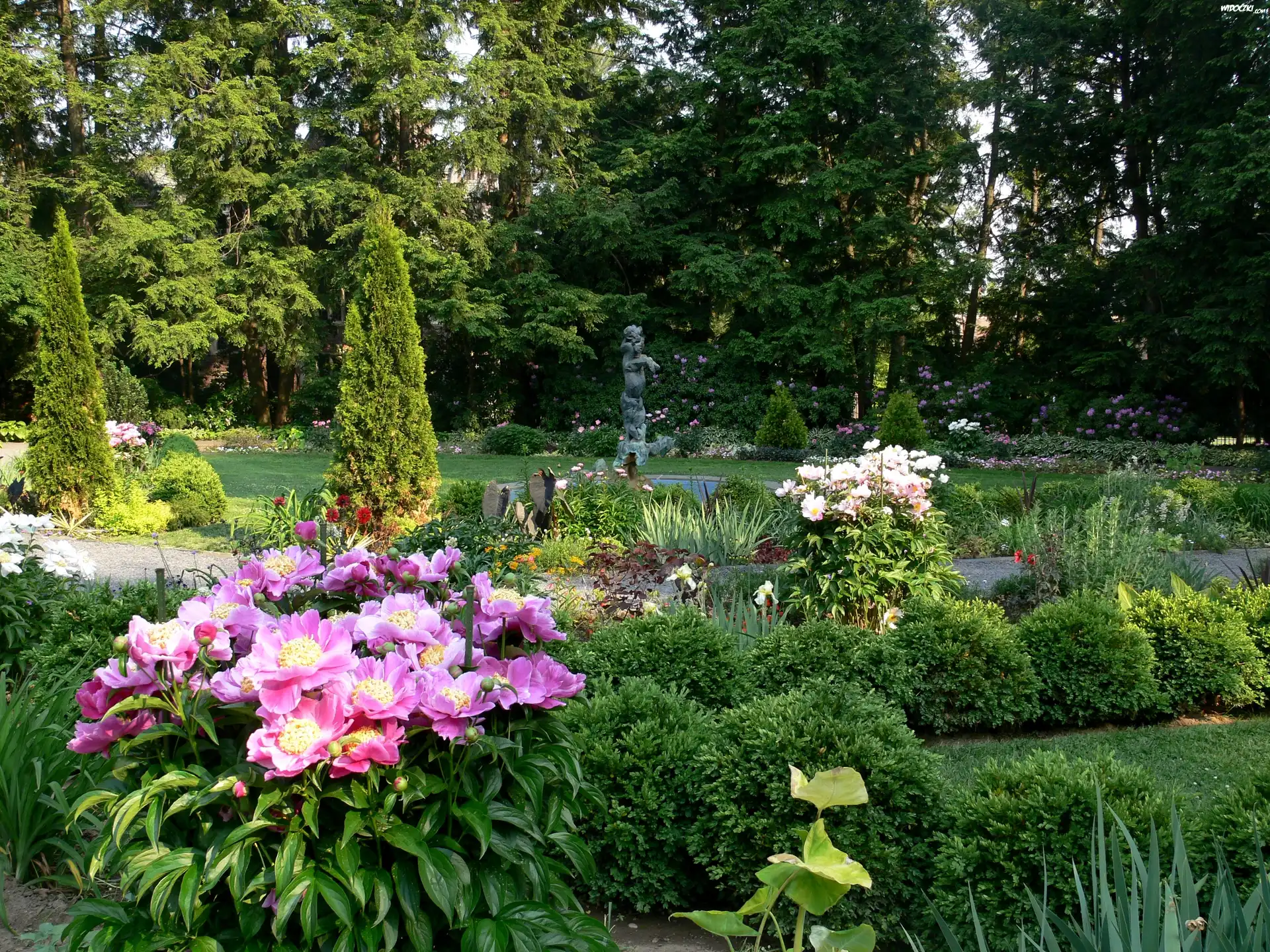 Zdjęcia, Ogród, Kwiaty, Drzewa, Roślinność
