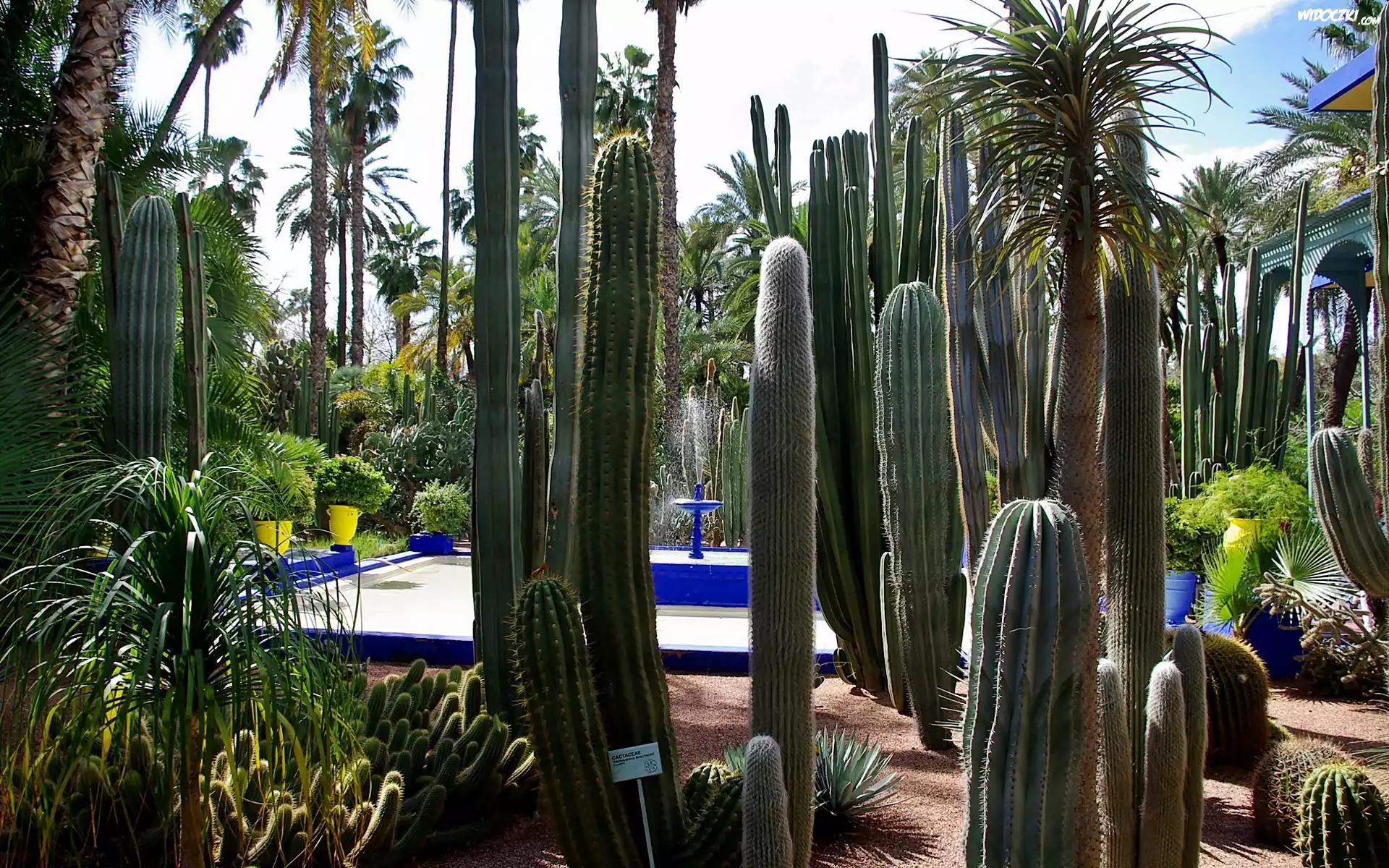 Zdjęcia, Ogród, Palmy, Kaktusy, Fontanna