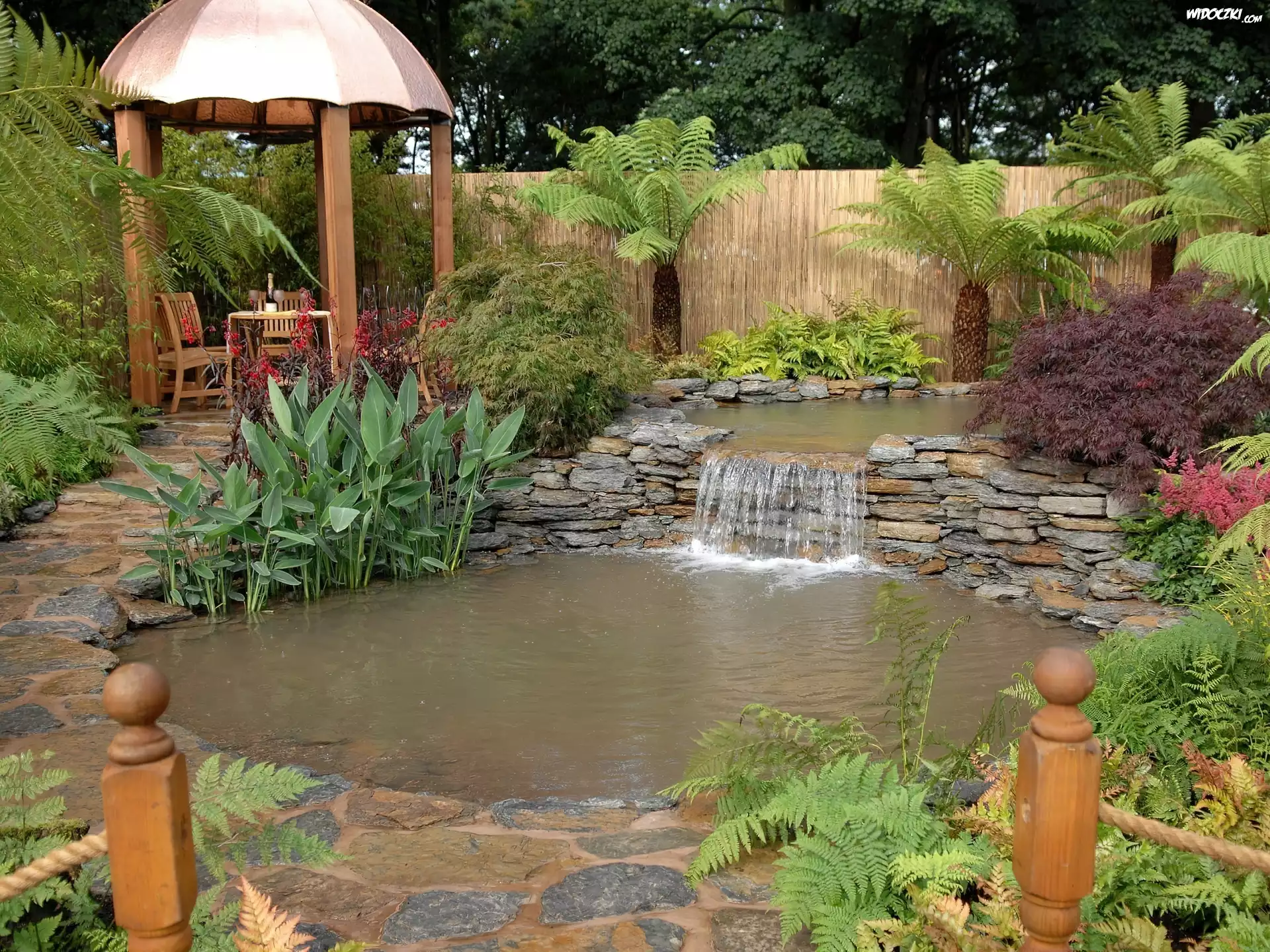Zdjęcia, Ogród, Altanka, Kaskada, Rośliny