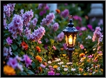Zdjęcia, Ogród, Lampa, Kwiaty