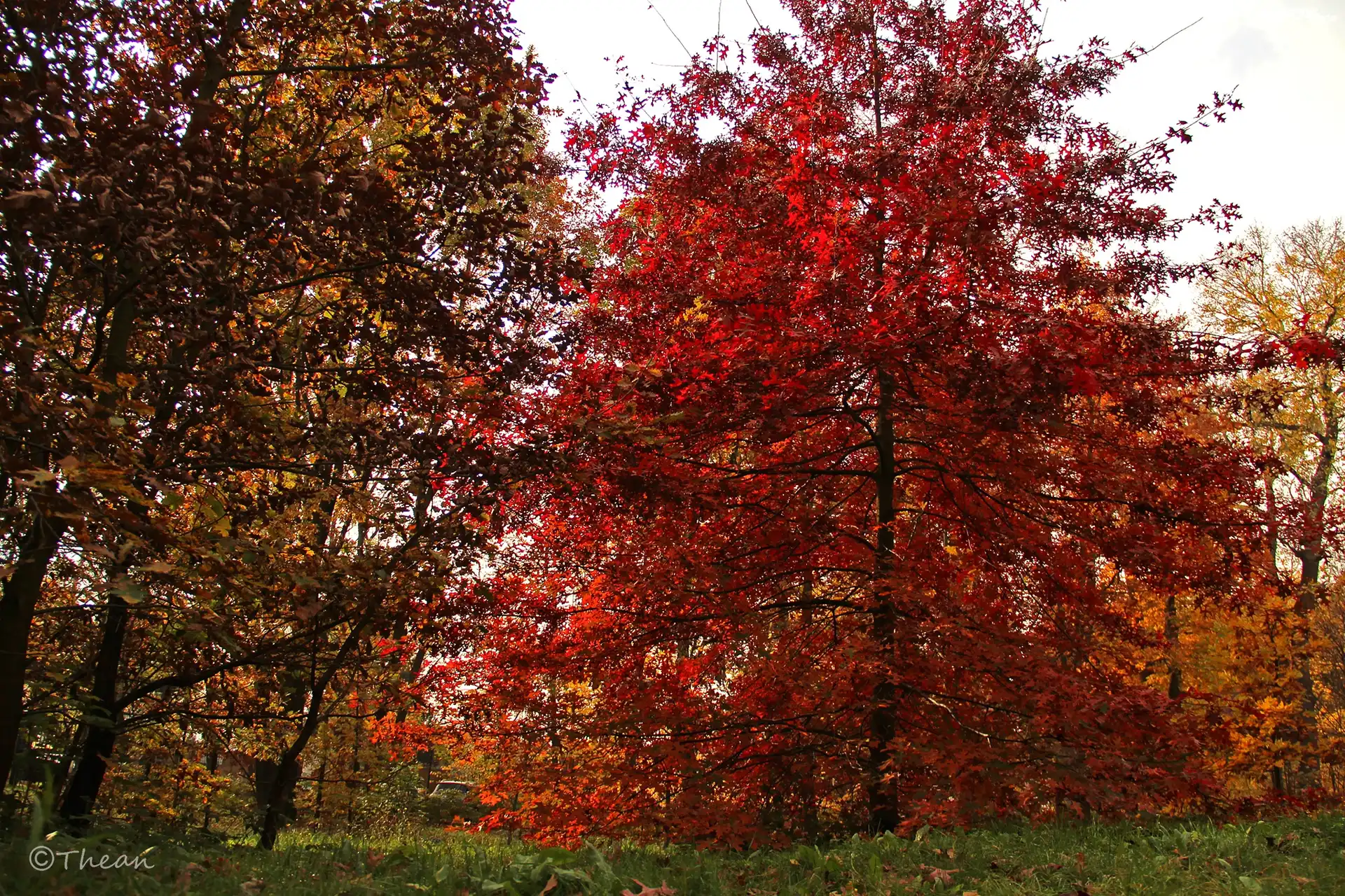 Ogród, Drzewa, Czerwone, Liście, Jesień