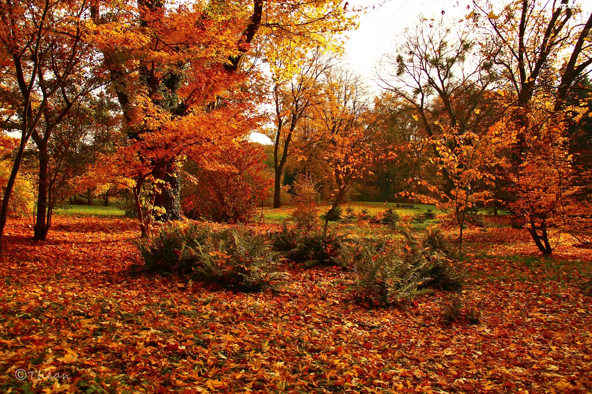 Ogród, Jesień, Kolorowe, Liście, Drzewa