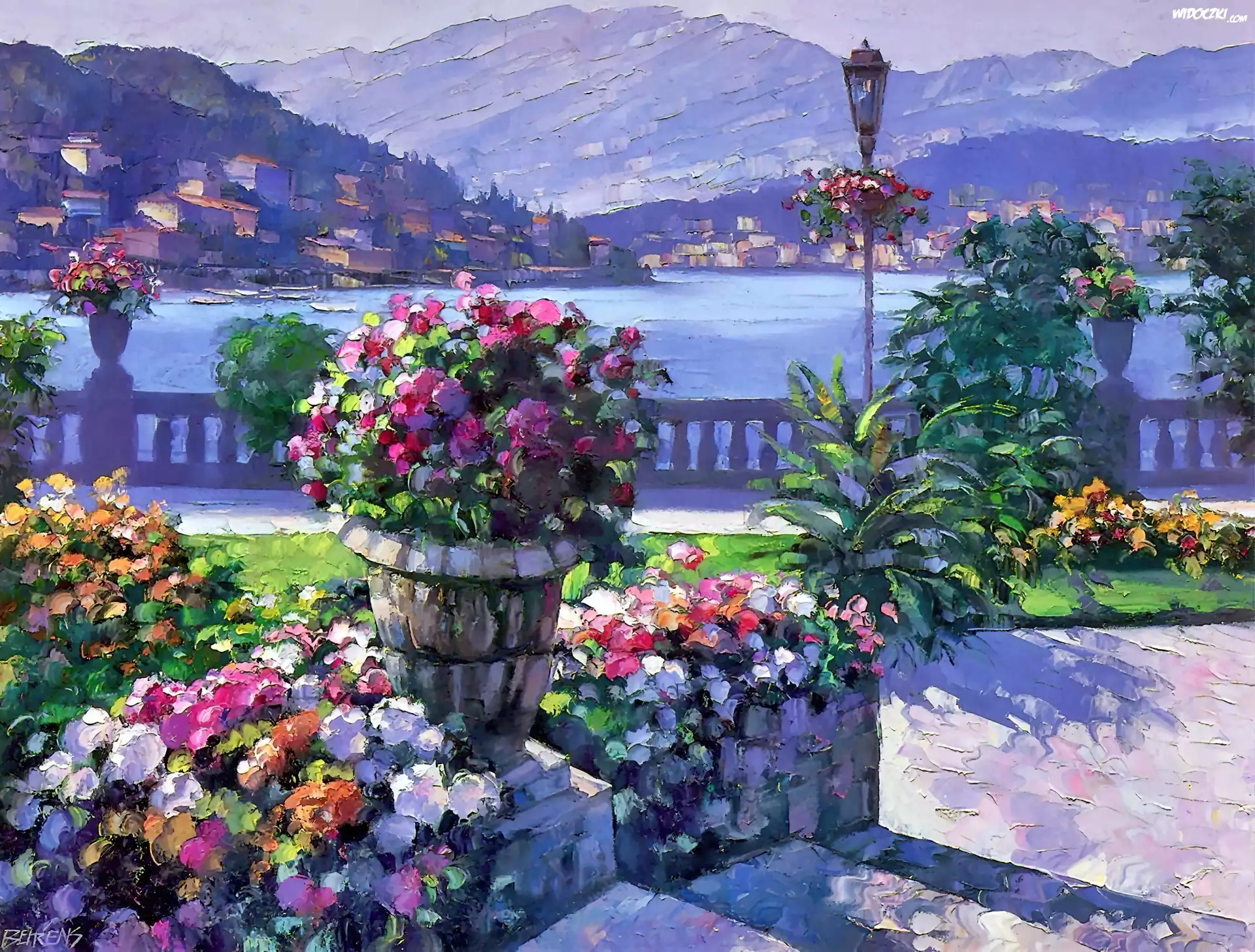 Zdjęcia, Ogród, Kwiaty, Morze, Widok