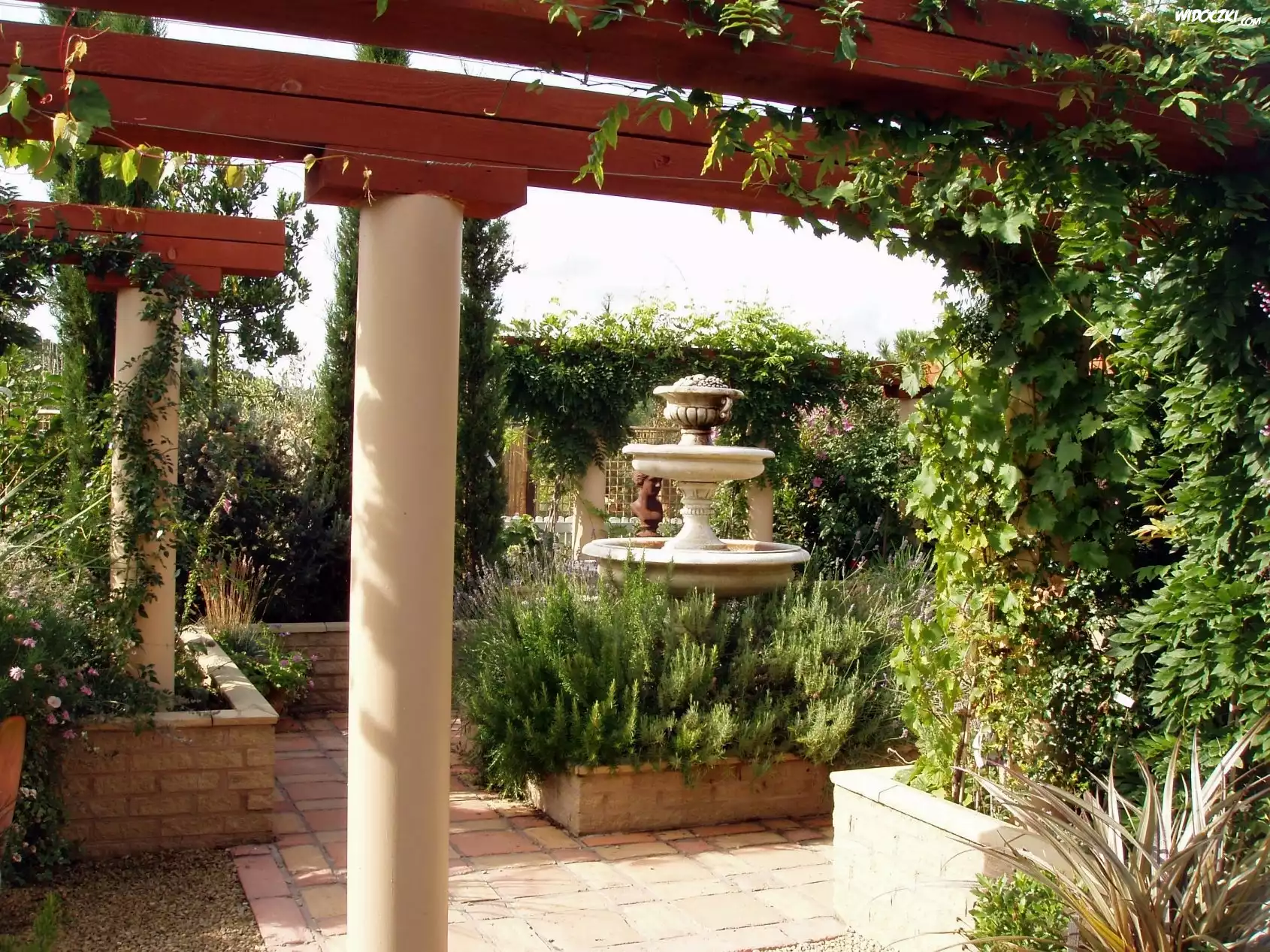 Zdjęcia, Ogród, Włoski, Pergola, Fontanna