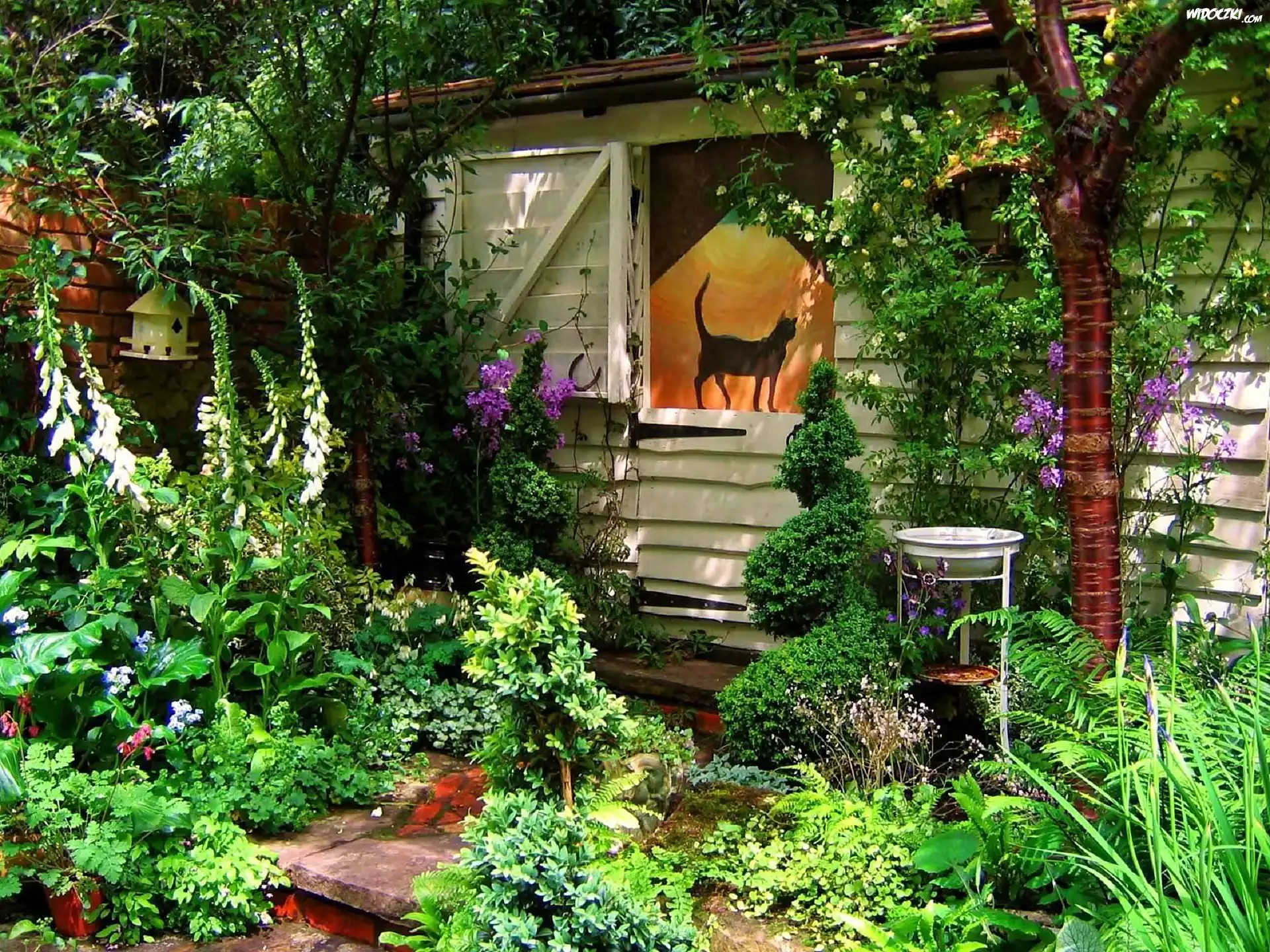 Zdjęcia, Ogród, Altanka, Przebijające, Światło