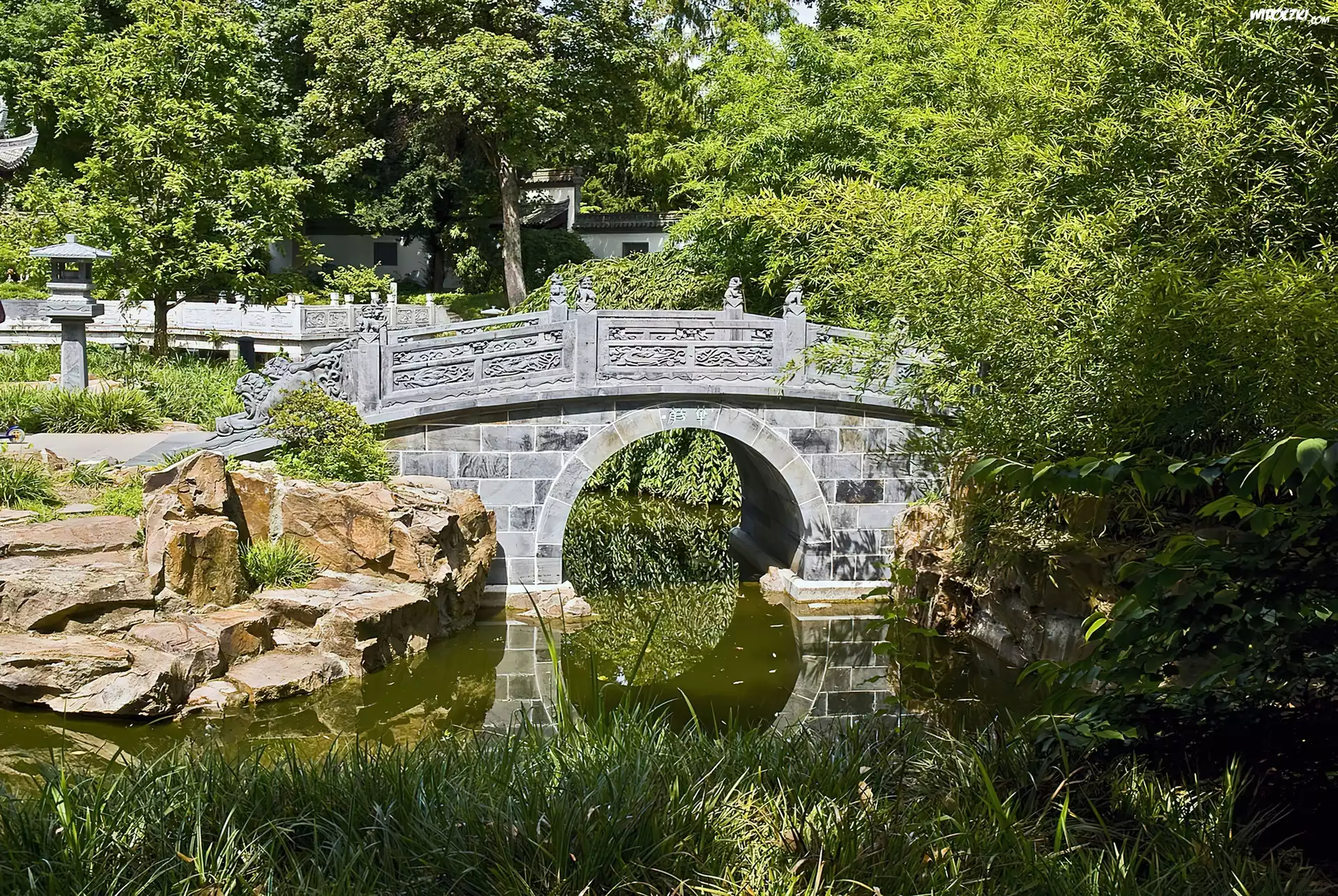 Zdjęcia, Ogród, Chiński, Rzeczka, Mostek