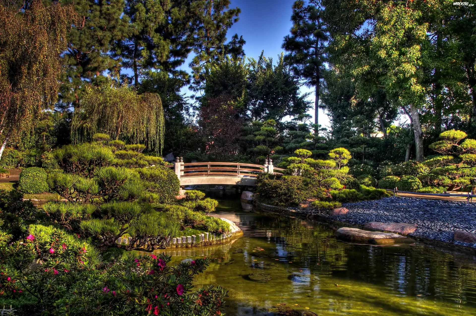 Zdjęcia, Ogród, Japoński, Staw, Mostek