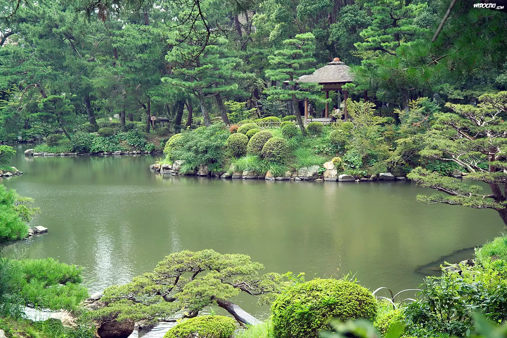 Zdjęcia, Ogród, Japoński, Staw, Zieleń
