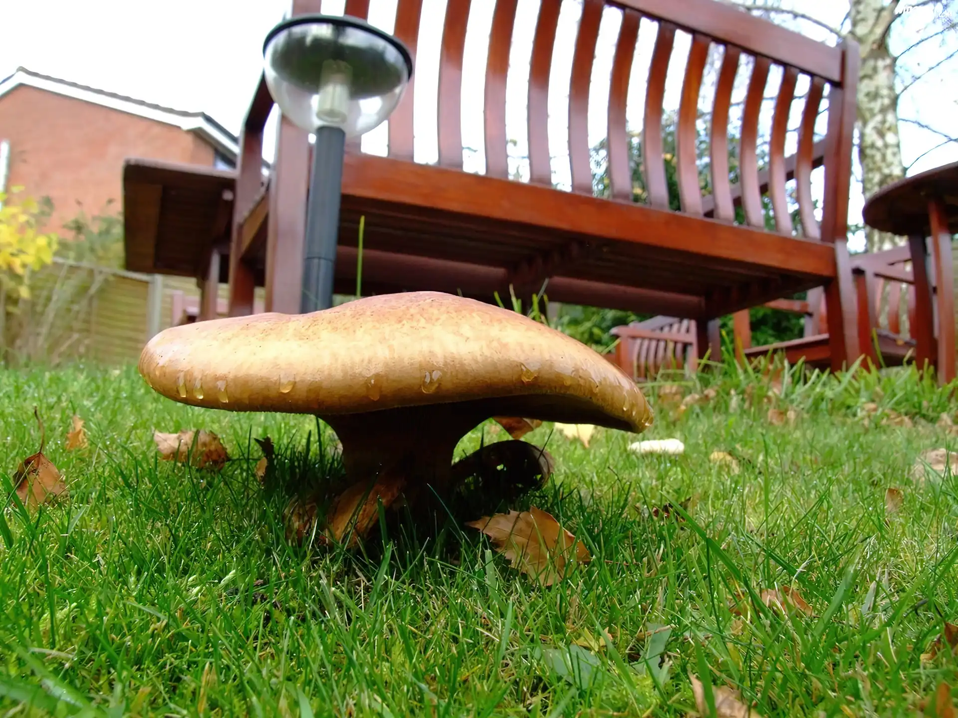 Zdjęcia, Ogród, Ławka, Latarnia, Trawa, Grzyb