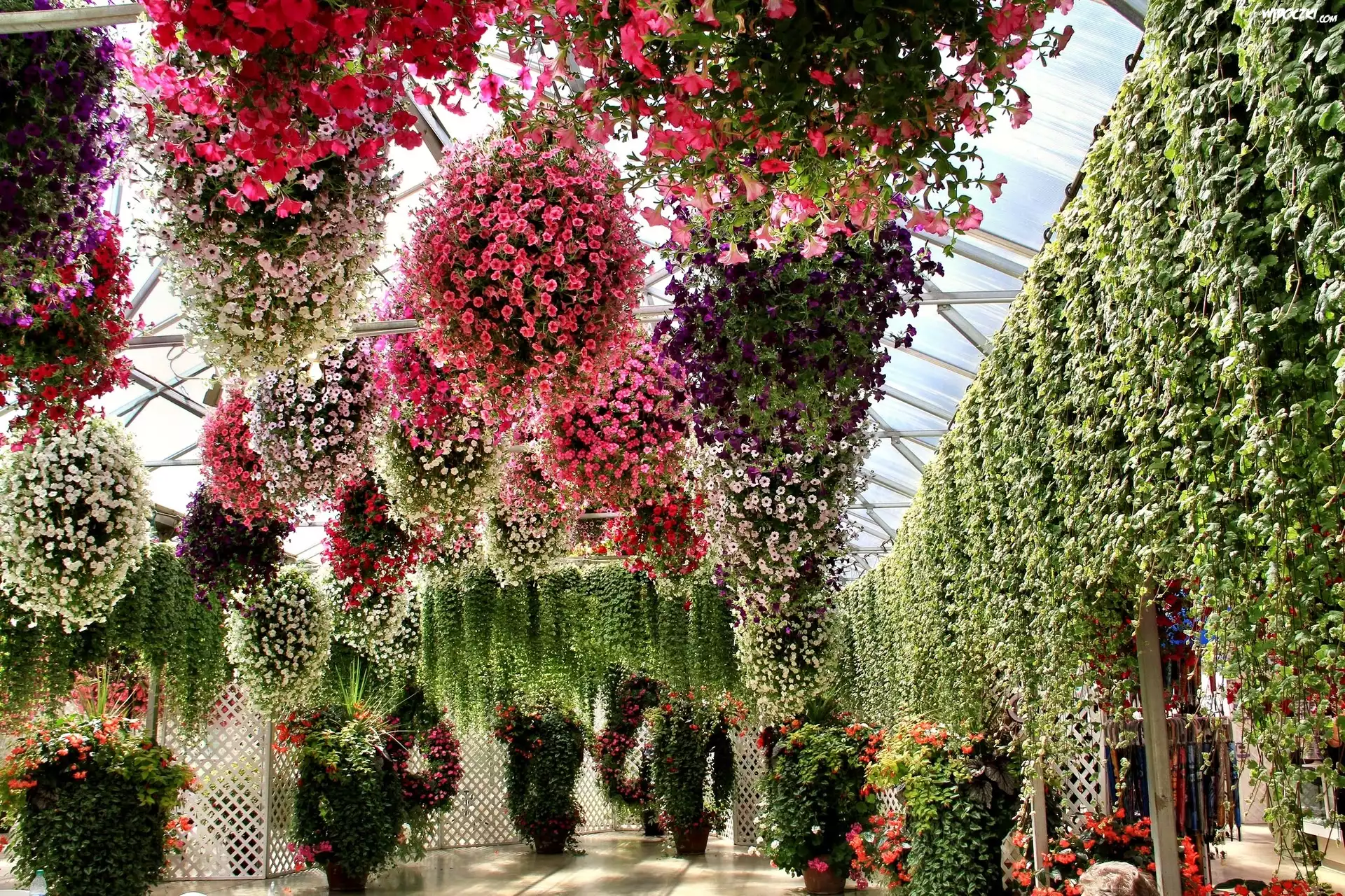 Zdjęcia, Ogród Botaniczny, Kolorowe, Wiszące, Surfinie