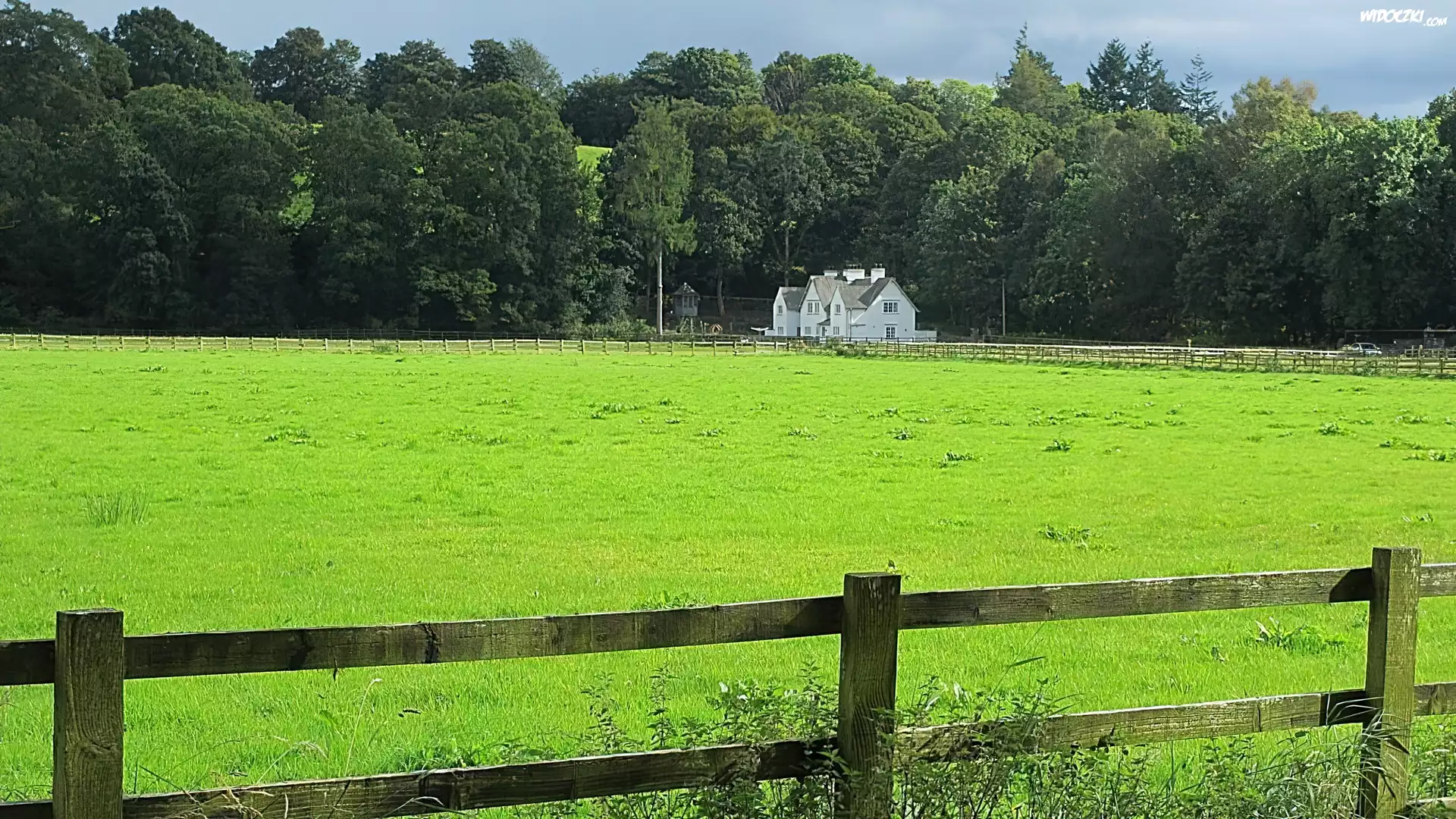 Zdjęcia, Ogrodzenie, Łąka, Dom, Drzewa