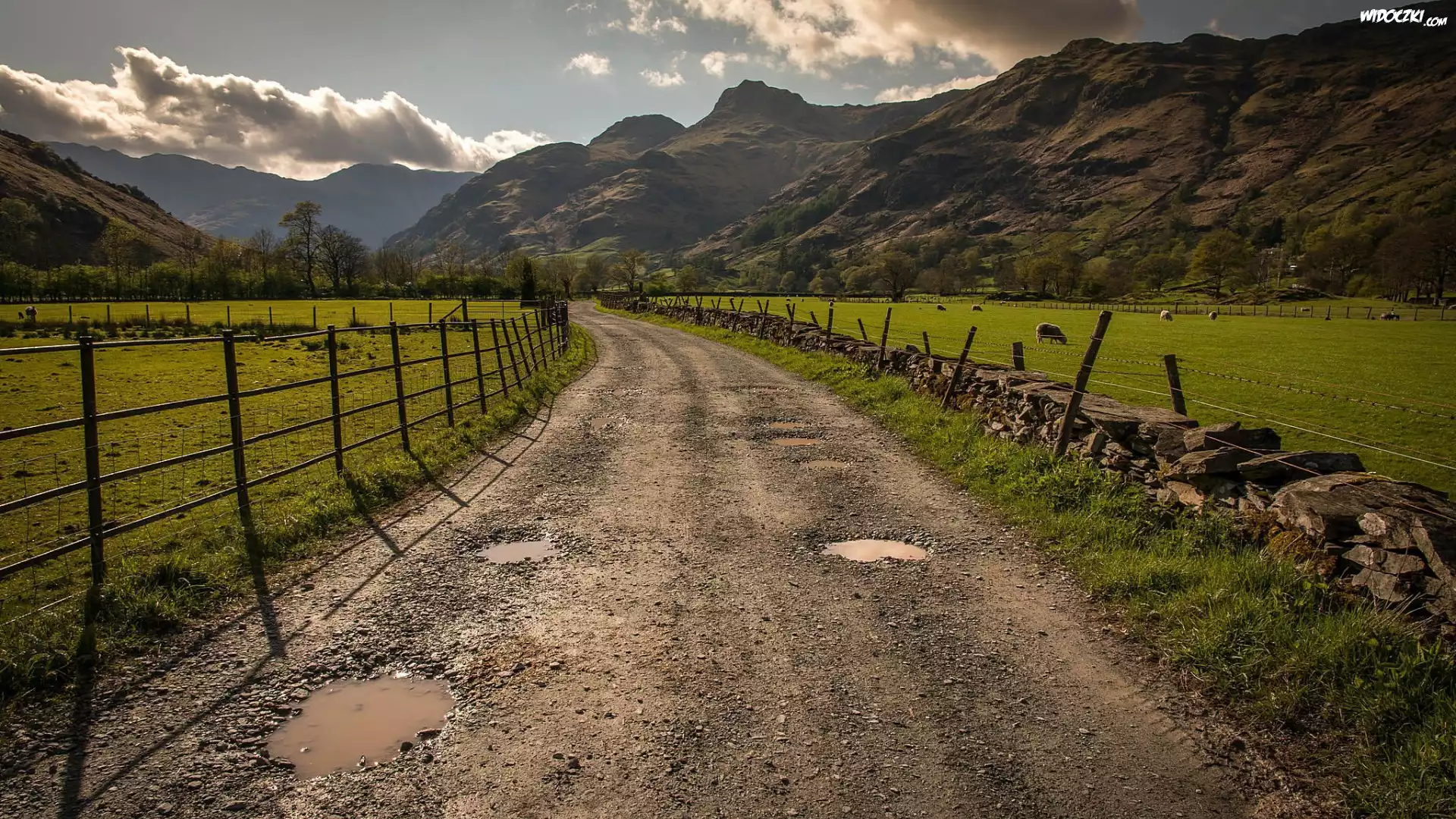 Zdjęcia, Droga, Ogrodzenie, Pastwisko, Dolina, Góry