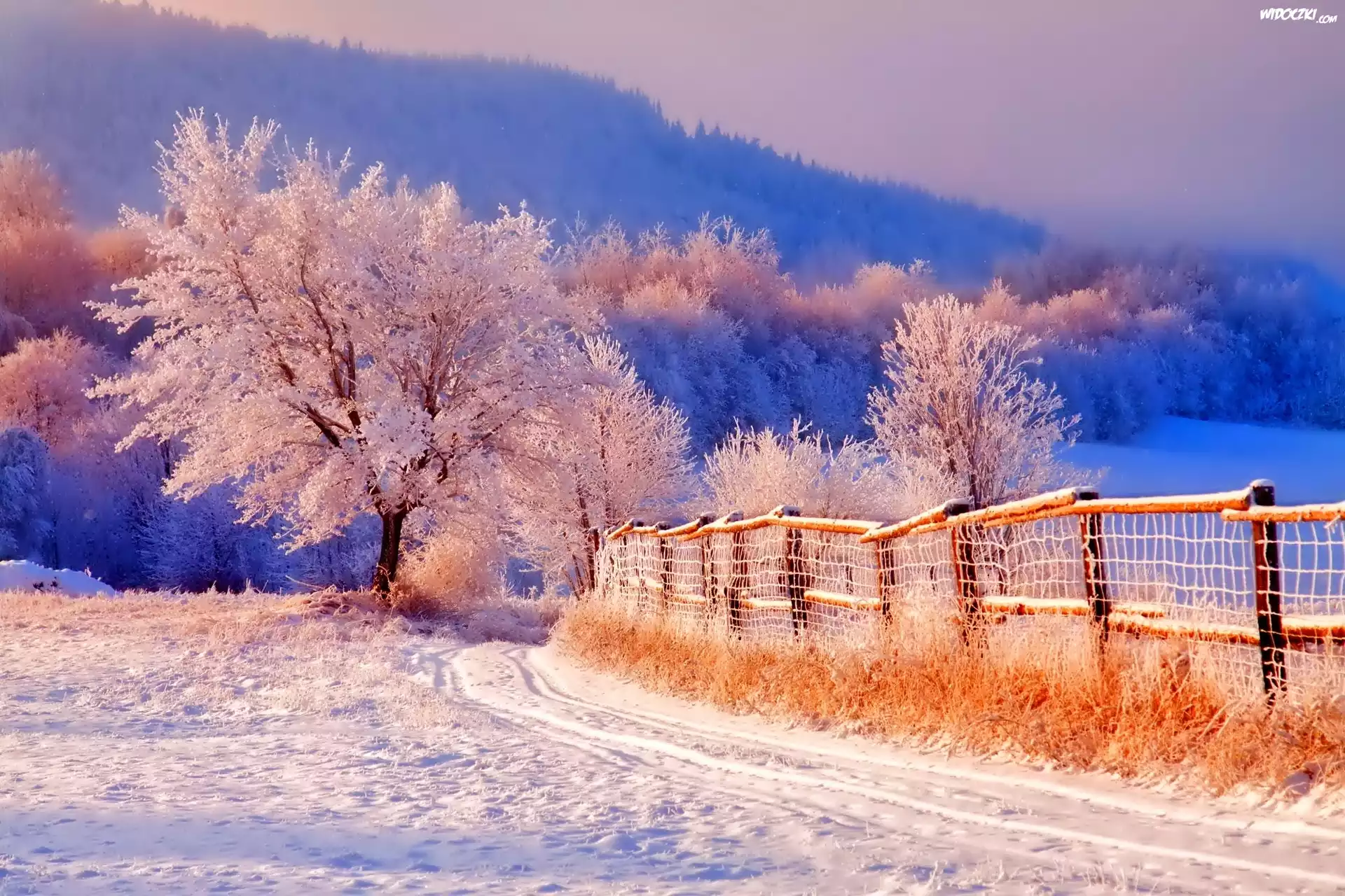 Zdjęcia, Zima, Ogrodzenie, Drzewo