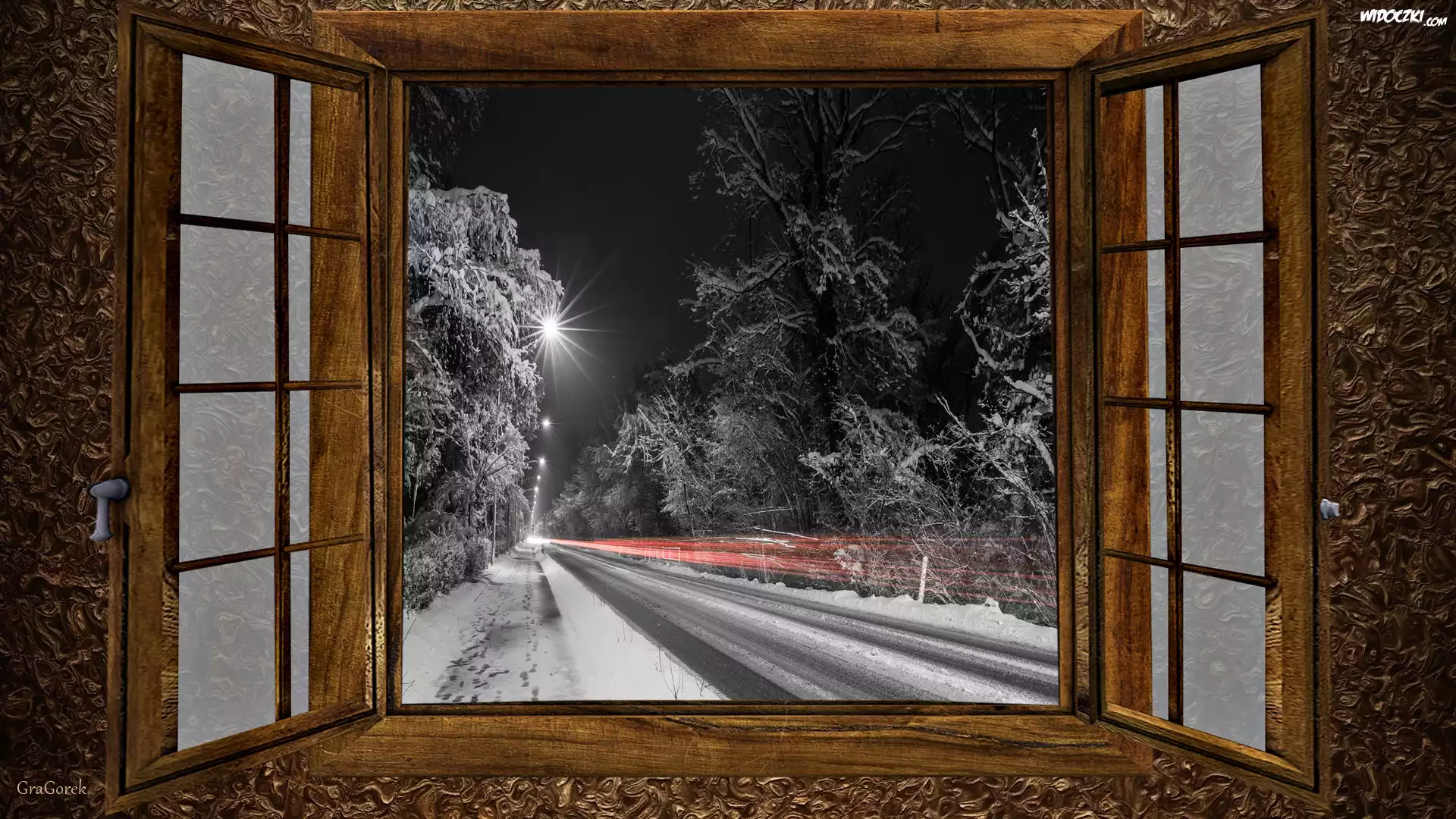 Zdjęcia, Okno, Zima, Droga, Noc, 2D