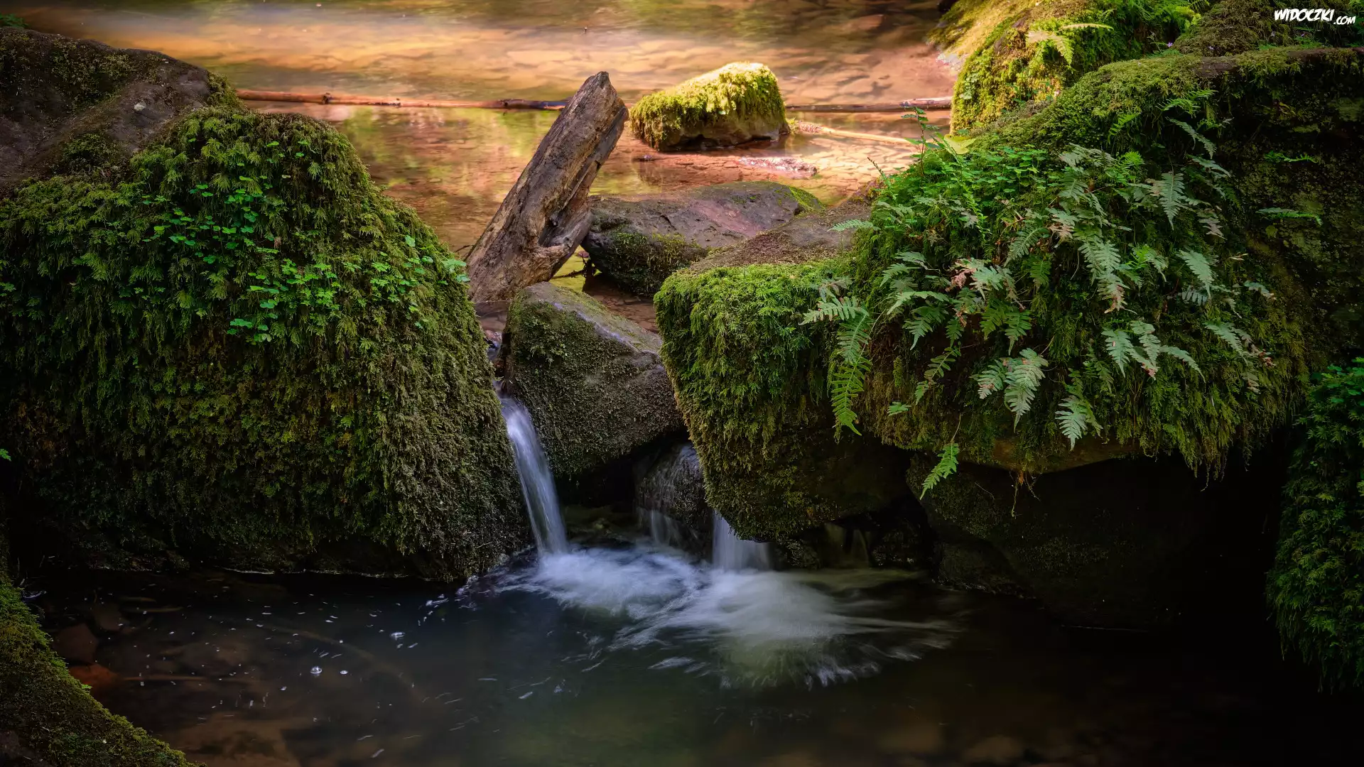 Zdjęcia, Rzeka, Omszałe, Kamienie, Rośliny, Paprocie
