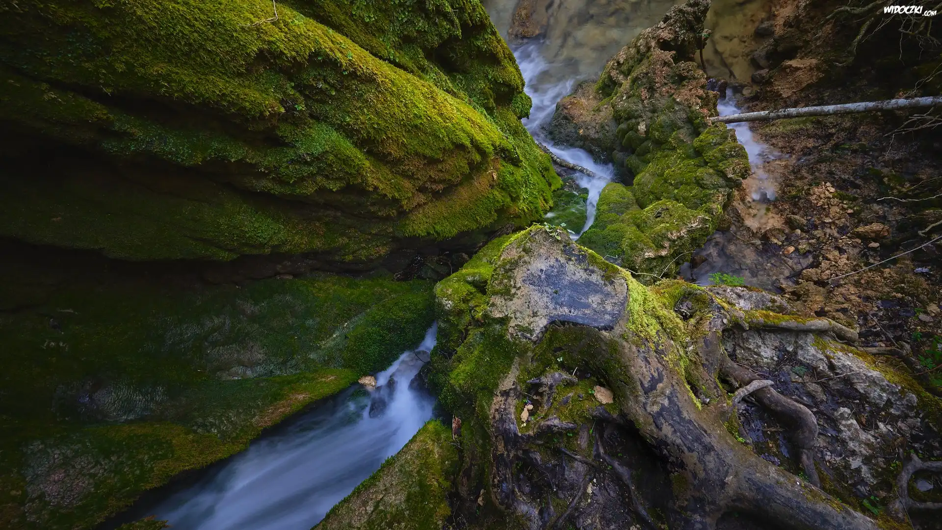 Zdjęcia, Omszałe, Skały, Potok