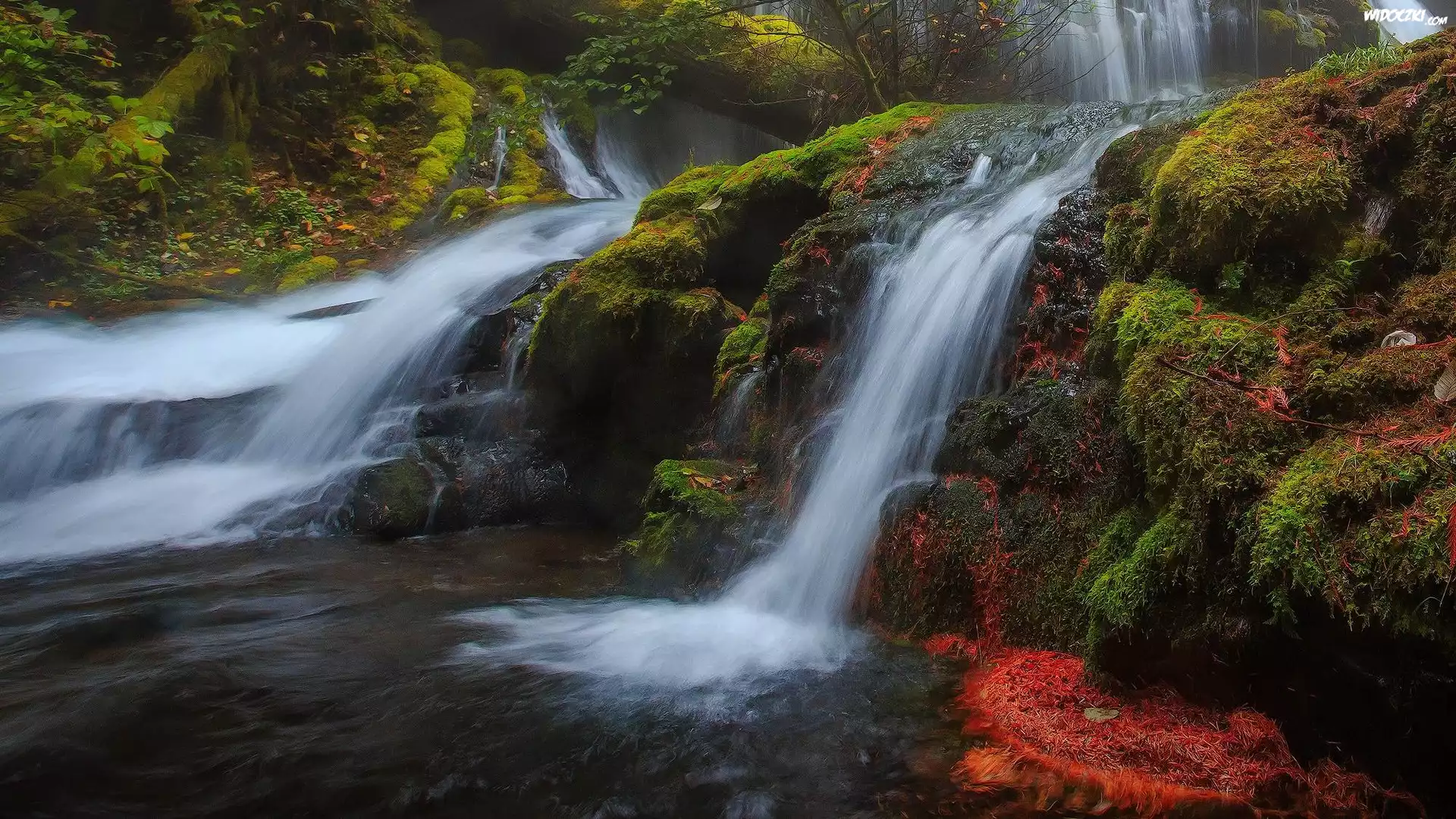 Zdjęcia, Omszałe, Skały, Rzeka, Próg skalny