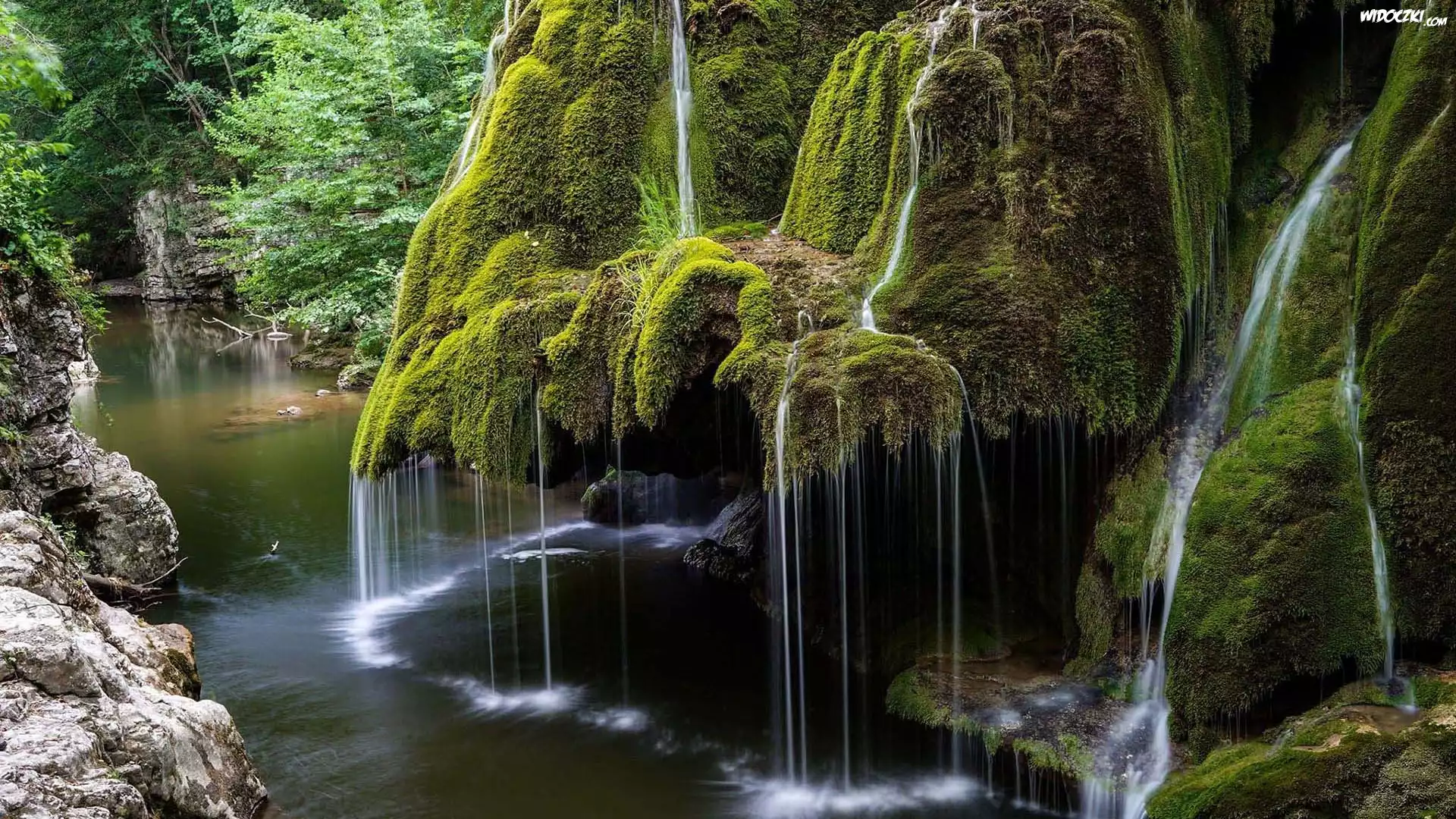 Zdjęcia, Omszałe, Skały, Wodospad, Bigar Cascade Falls, Rzeka, Minis River, Rumunia