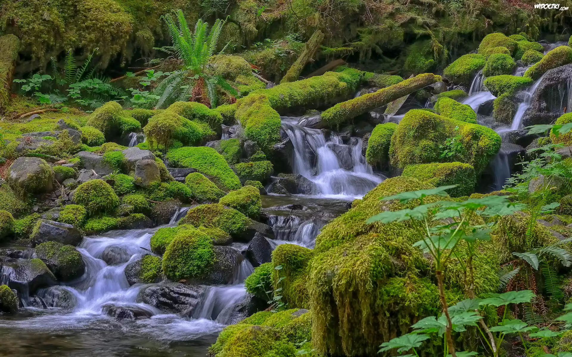 Zdjęcia, Omszałe, Kamienie, Rośliny, Rzeka, Potok