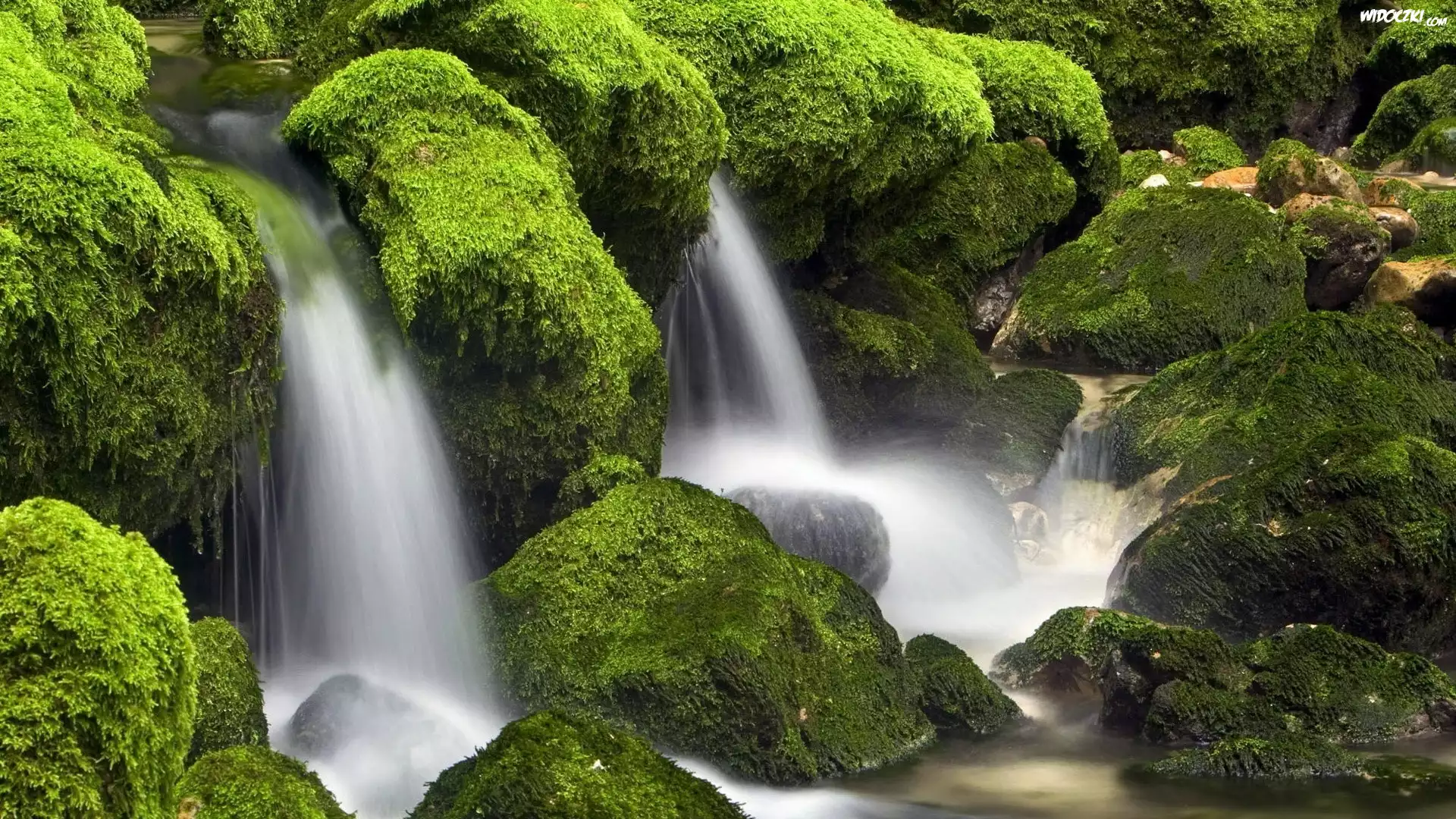 Zdjęcia, Wodospad, Omszałe, Kamienie