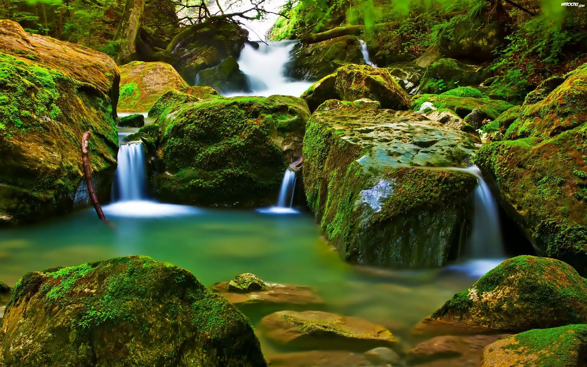 Wodospad, Omszałe, Kamienie
