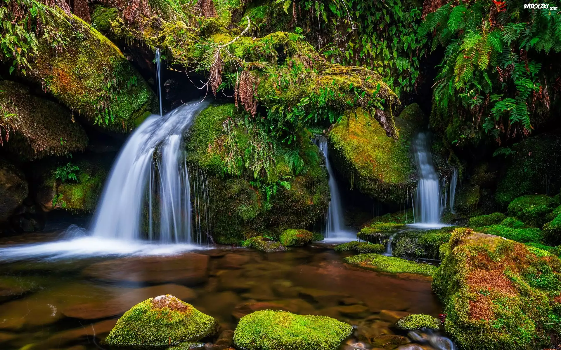 Zdjęcia, Wodospad, Roślinność, Rzeka, Omszone, Kamienie, Skały