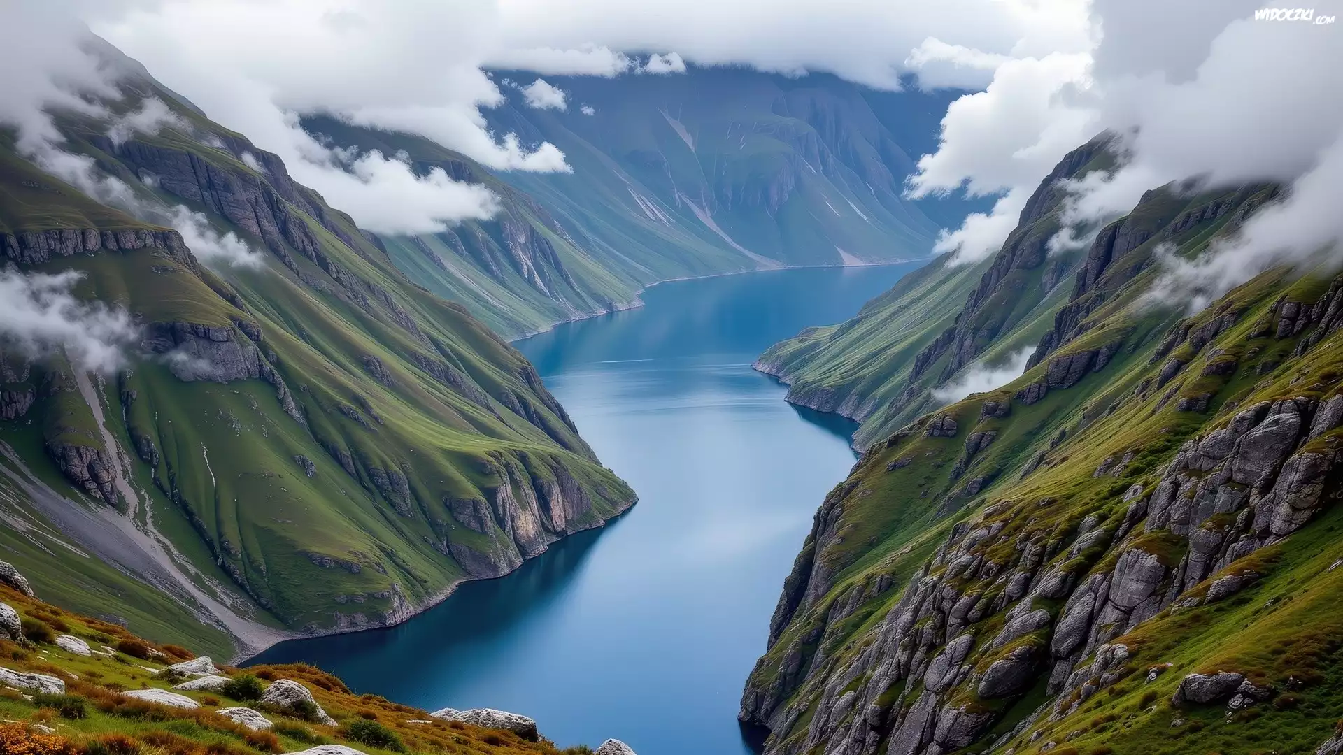Zdjęcia, Góry, Opadające, Chmury, Fiord, AI