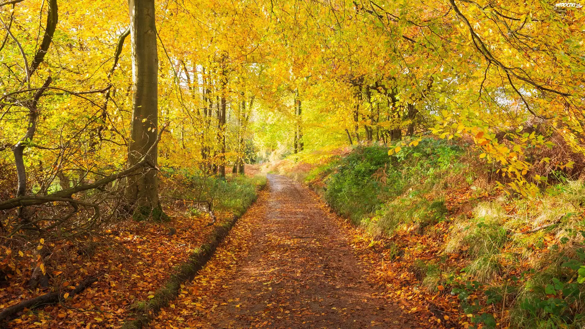 Zdjęcia, Ścieżka, Park, Drzewa, Opadłe, Liście, Jesień