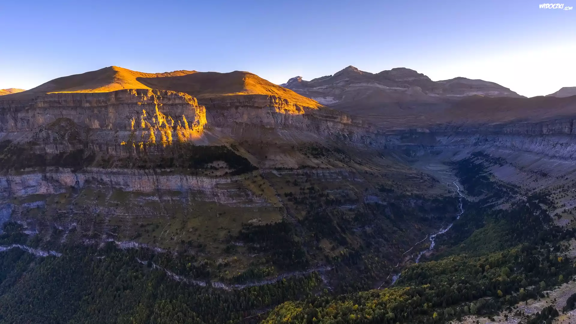 Góry, Pireneje, Drzewa, Kanion, Park Narodowy Ordesa y Monte Perdido, Hiszpania