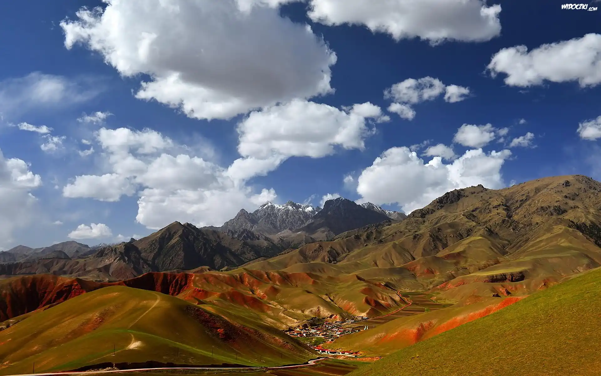 Zdjęcia, Góry, Osada, Chmury