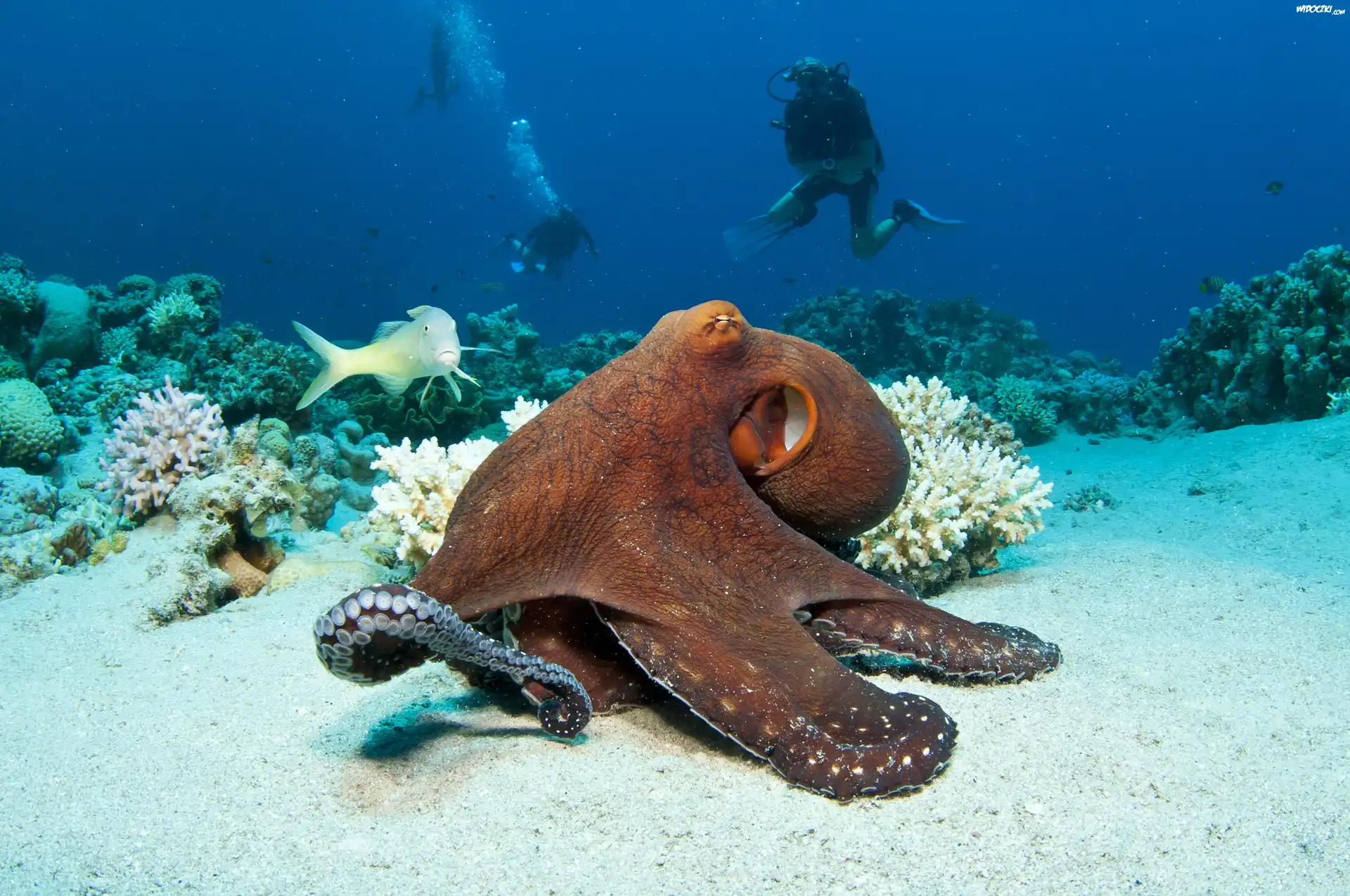 Zdjęcia, Ośmiornica, Ryba, Rafa Koralowa, Nurkowie