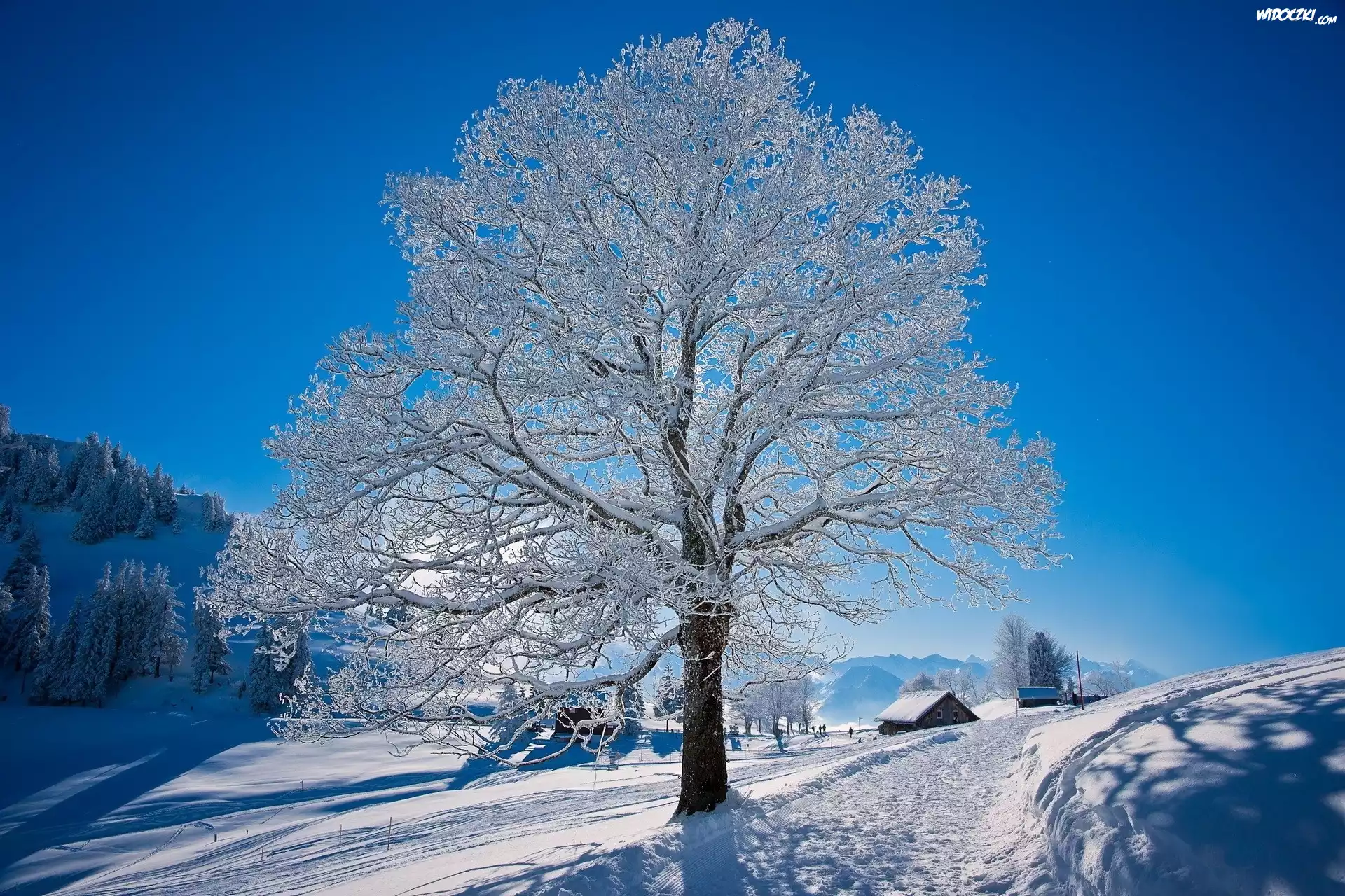 Zdjęcia, Ośnieżona, Górka, Samotne, Oszronione, Drzewo