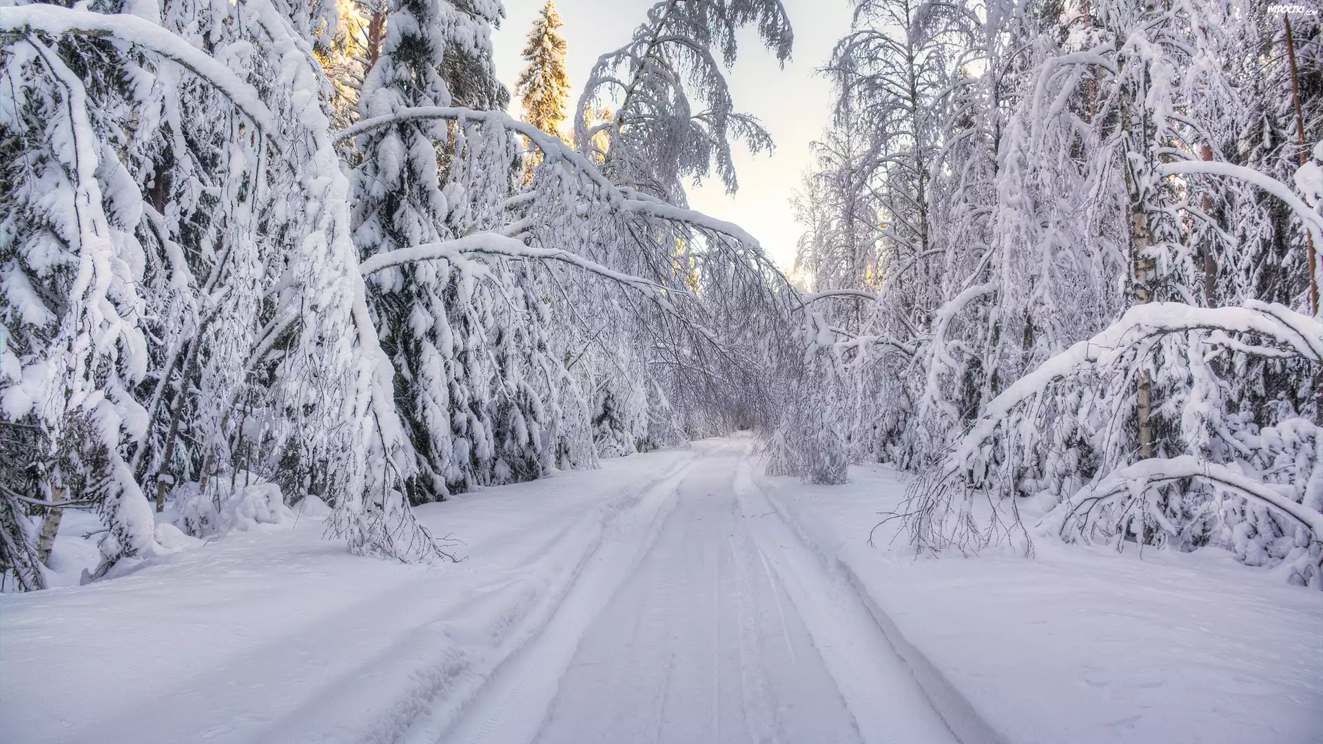 Zdjęcia, Droga, Ośnieżone, Drzewa, Zima, Las