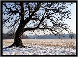Zima, Stare, Drzewo, Ośnieżone, Pole, Suche, Trawy