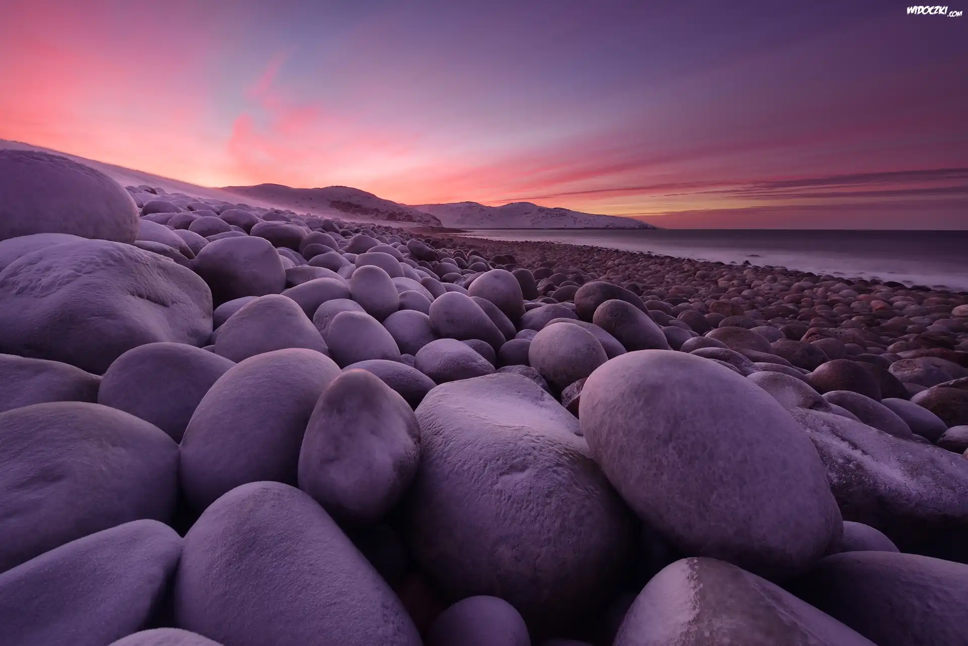 Miejscowość Teriberka, Wybrzeże, Morze Barentsa, Ośnieżone, Kamienie, Zatoka Kolska, Obwód murmański, Rosja |