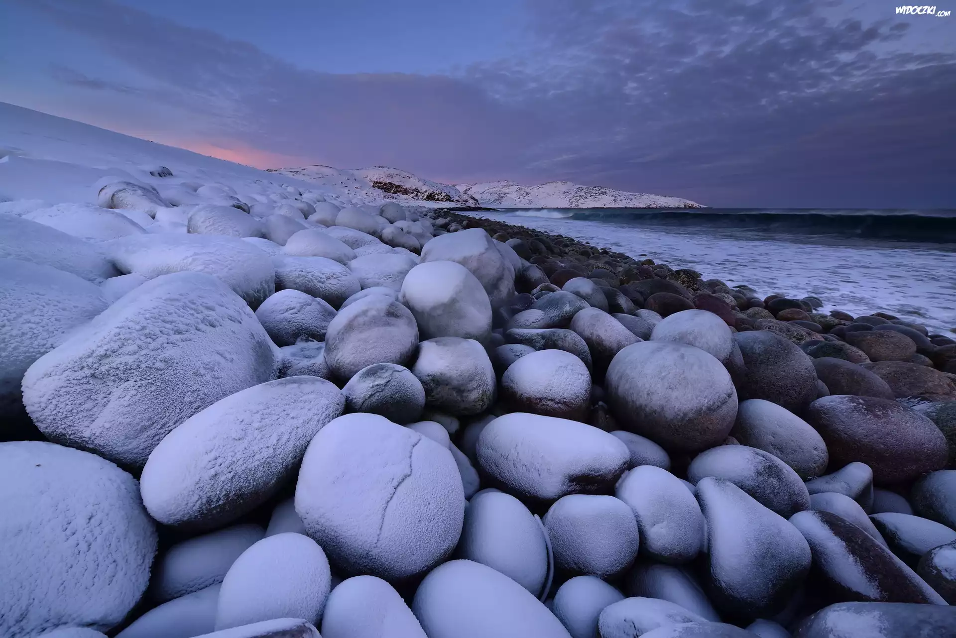 Miejscowość, Teriberka, Wybrzeże, Morze Barentsa, Ośnieżone, Kamienie, Zatoka Kolska, Obwód murmański, Rosja |
