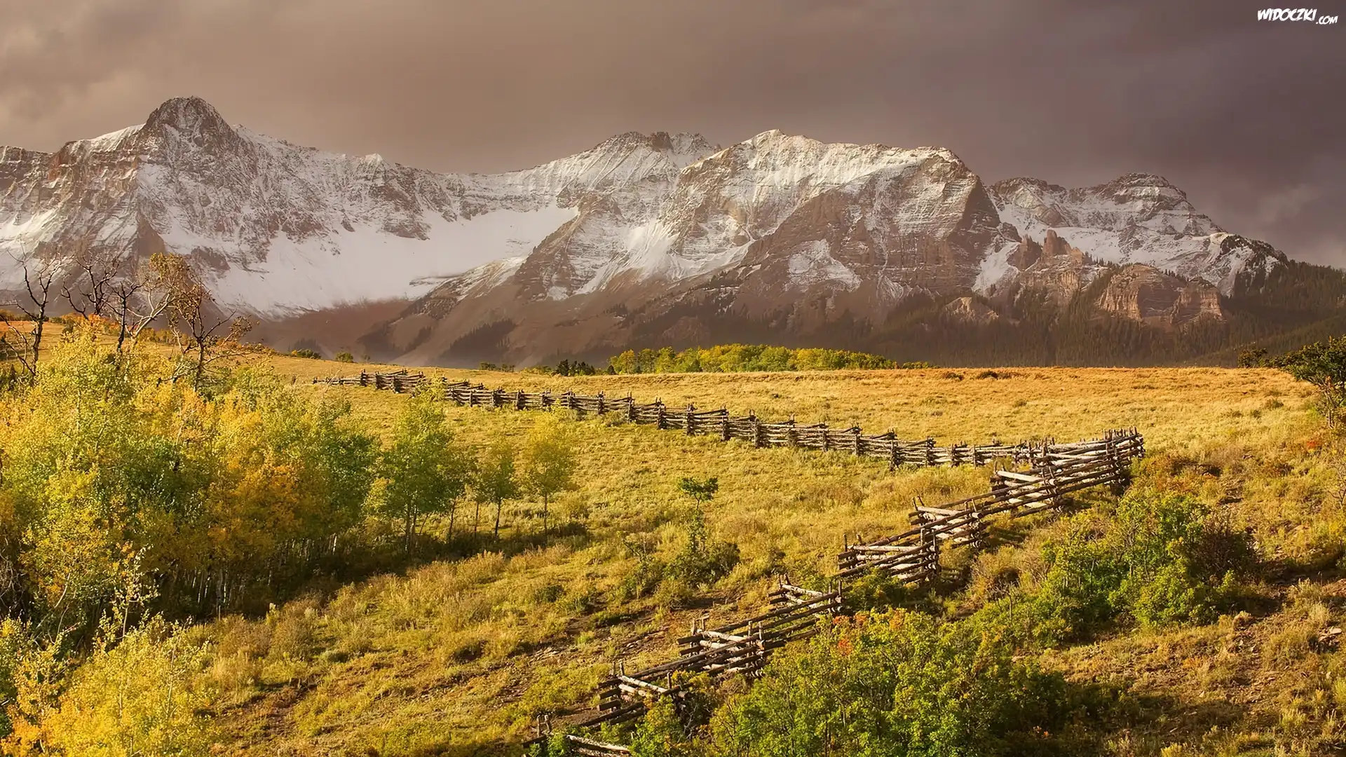 Łąki, Ogrodzenie, Ośnieżone, Góry