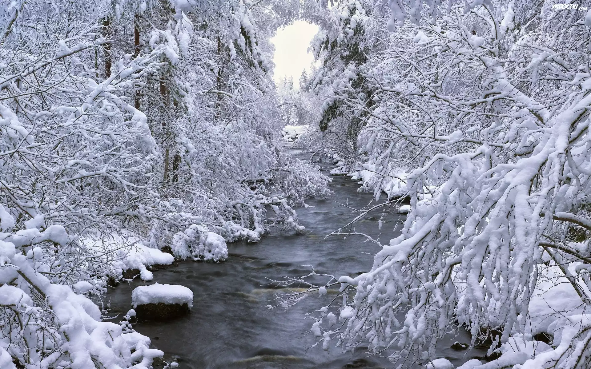 Zdjęcia, Rzeczka, Ośnieżone, Drzewa
