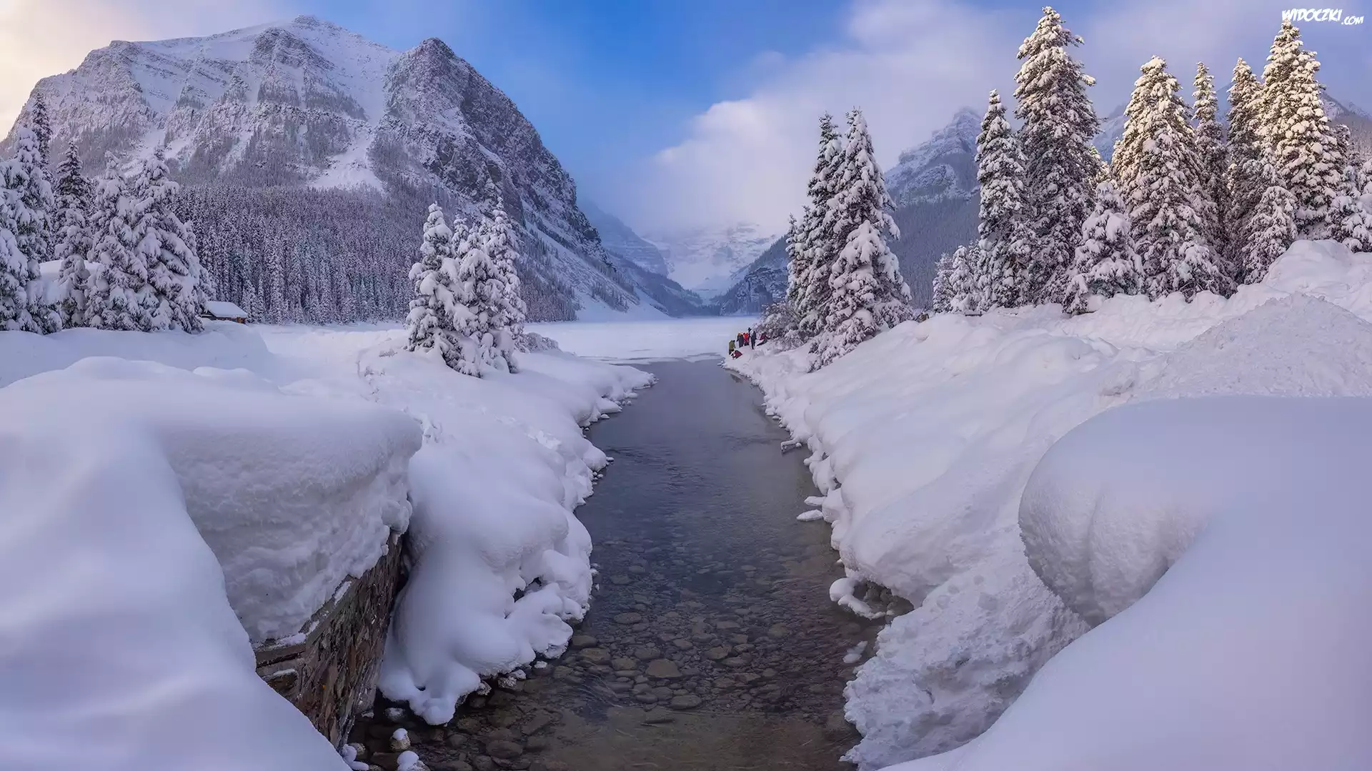 Zdjęcia, Zima, Góry, Las, Ośnieżone, Drzewa, Rzeka