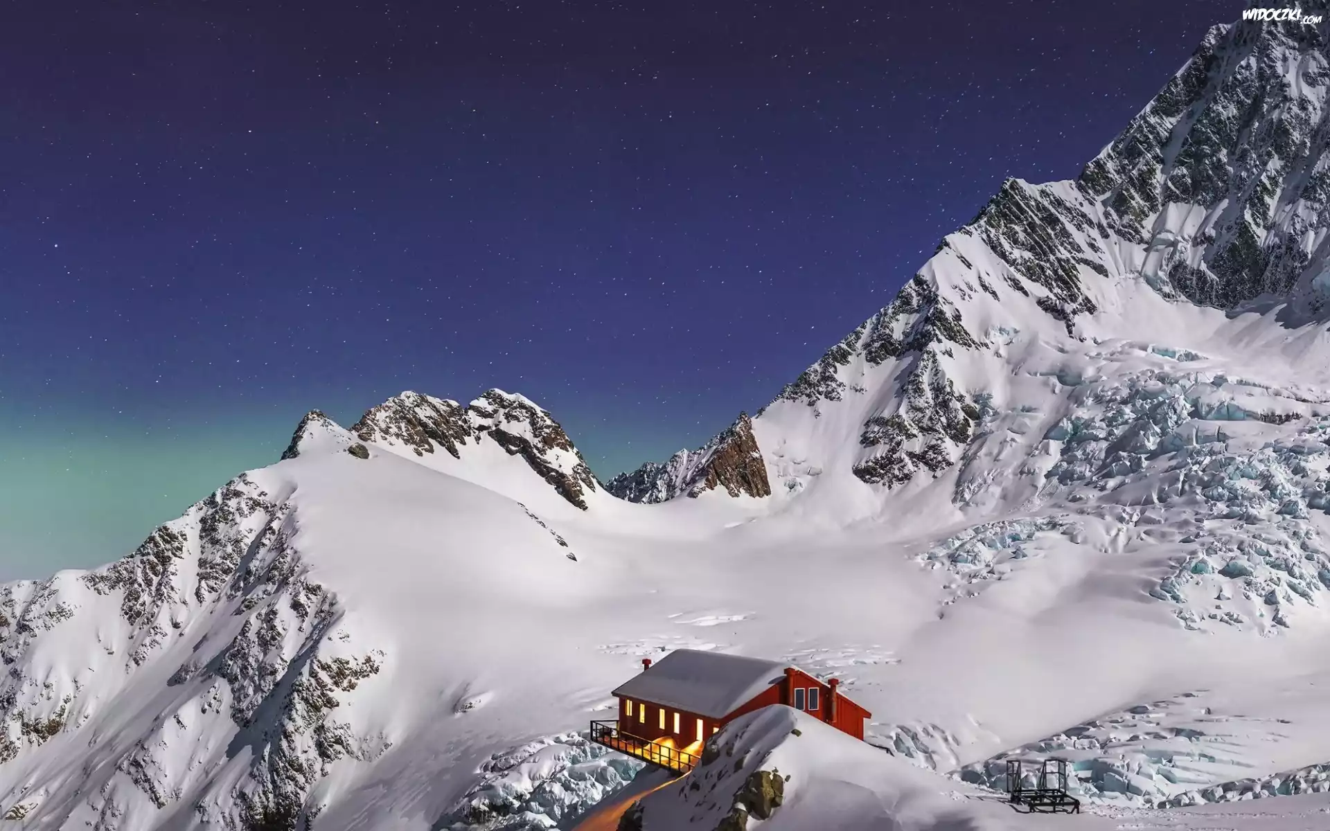 Zdjęcia, Ośnieżone, Góry, Schronisko, Zima