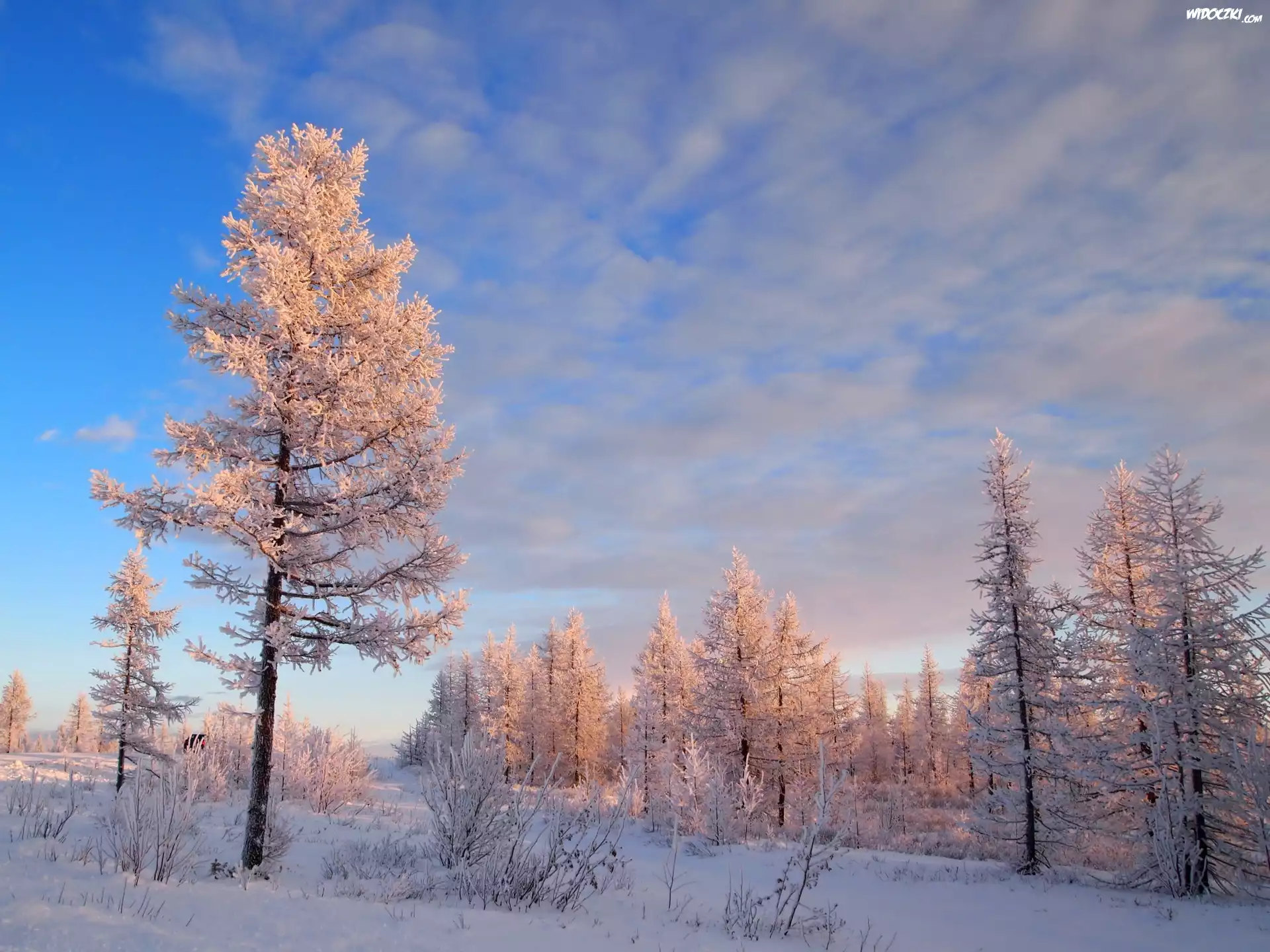 Zdjęcia, Zima, Ośnieżone, Drzewa