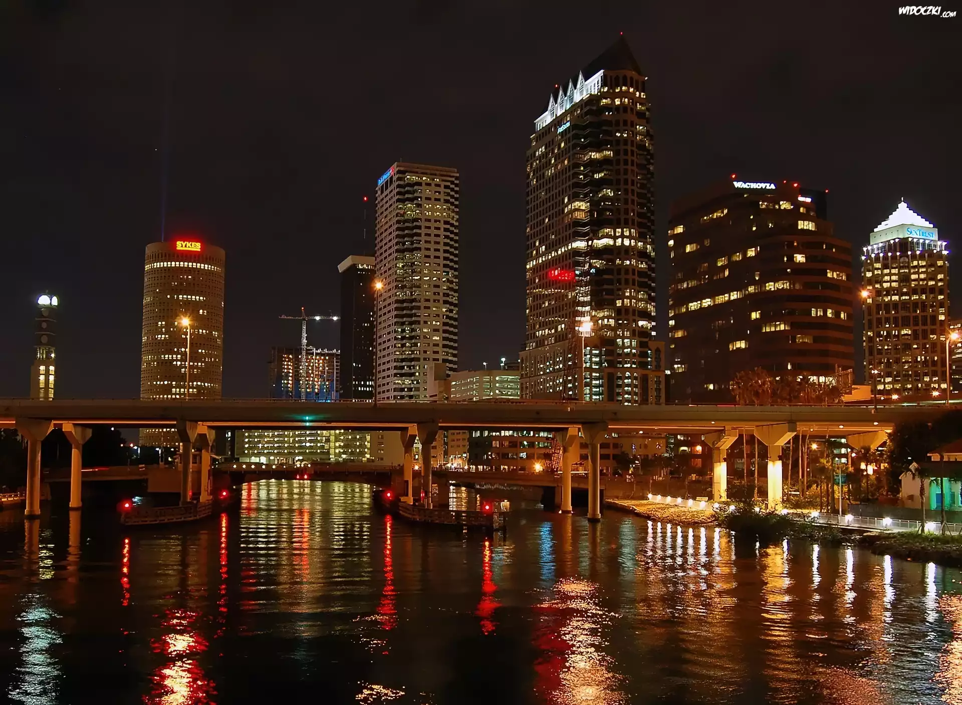Zdjęcia, Oświetlone, Miasto, Noc, Rzeka, Most