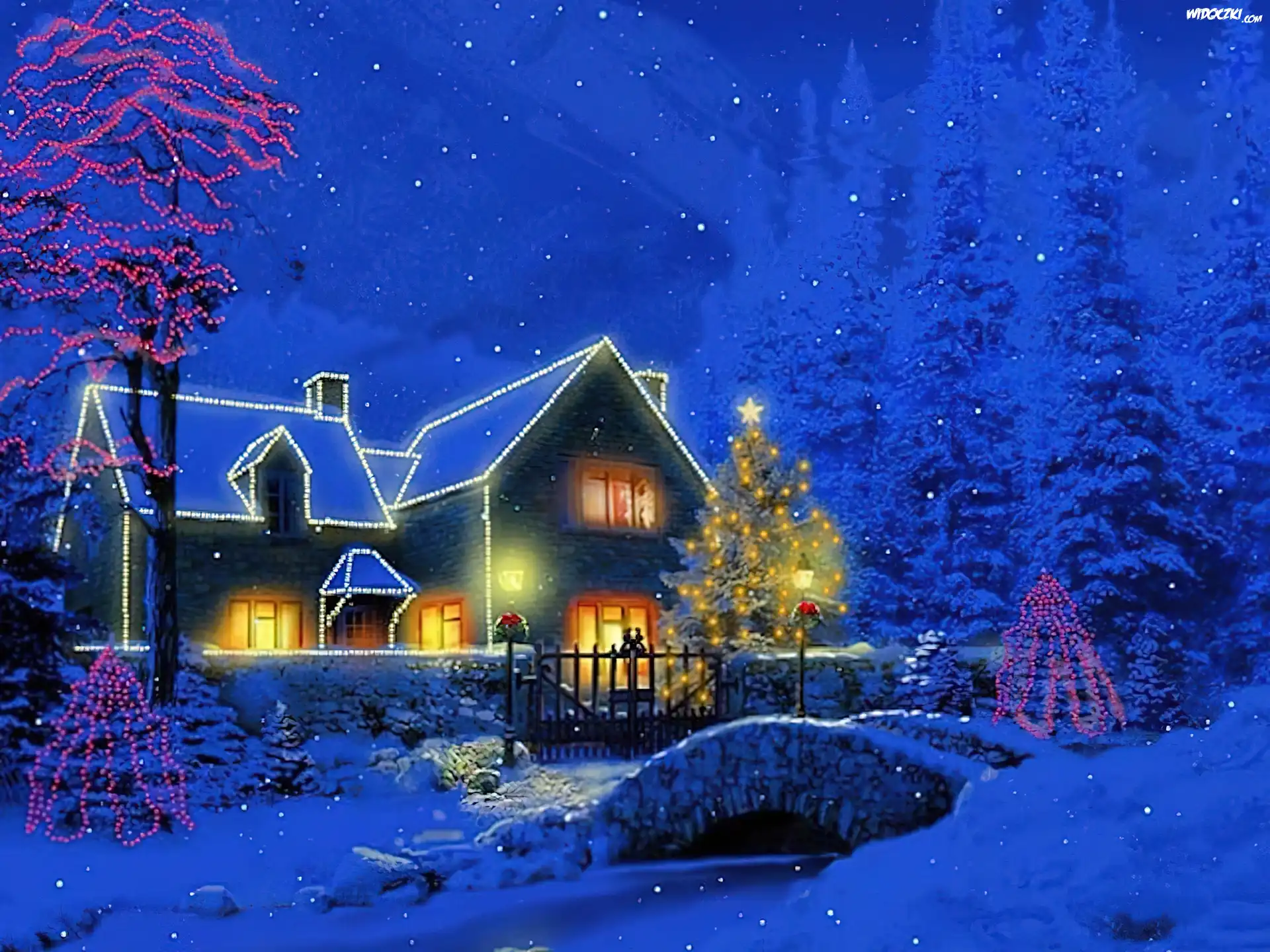 Oświetlony, Dom, Zima, Boże Narodzenie