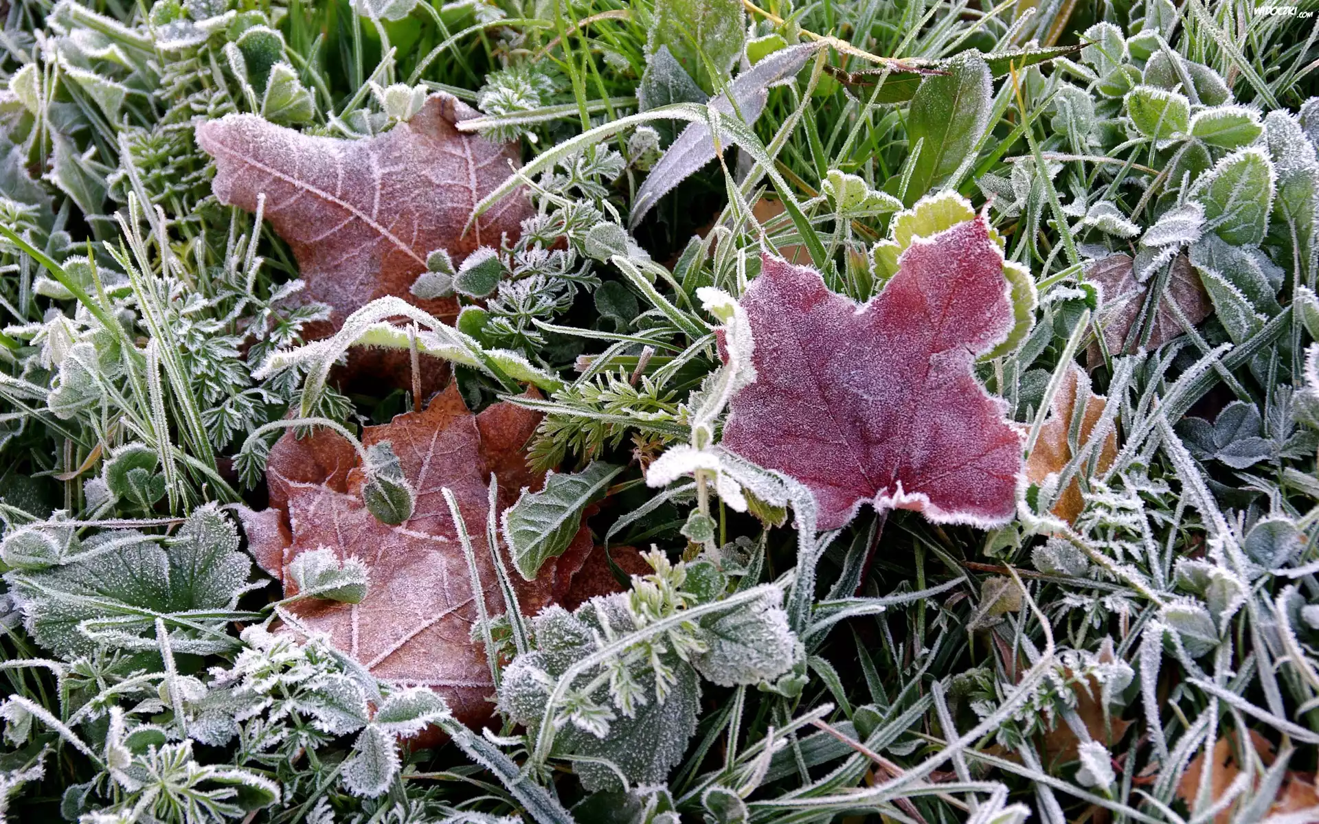 Zdjęcia, Oszronione, Rośliny, Czerwone, Listki