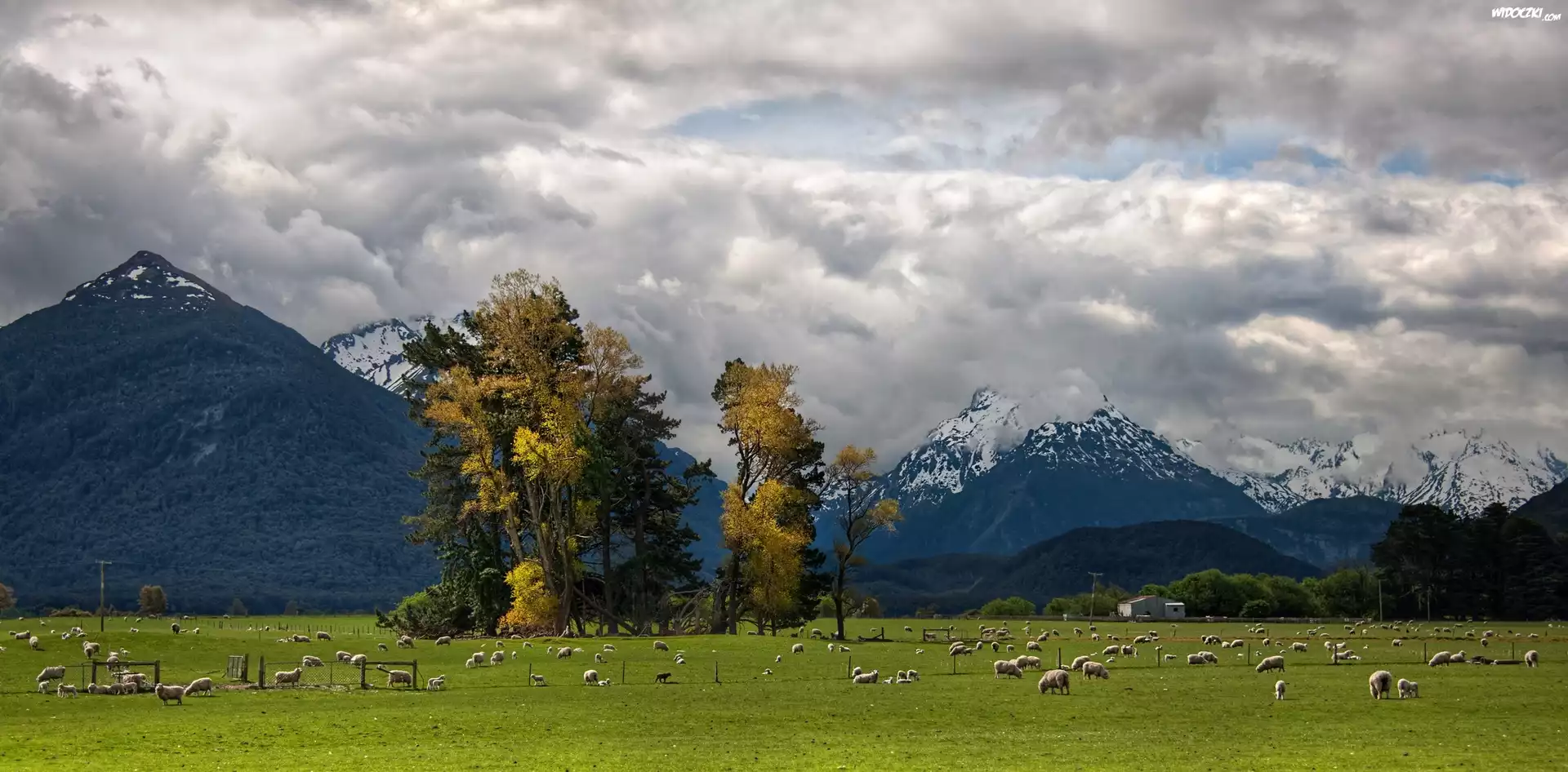 Pastwisko, Owce, Góry, Glenarchy, Nowa Zelandia, Trey Ratcliff