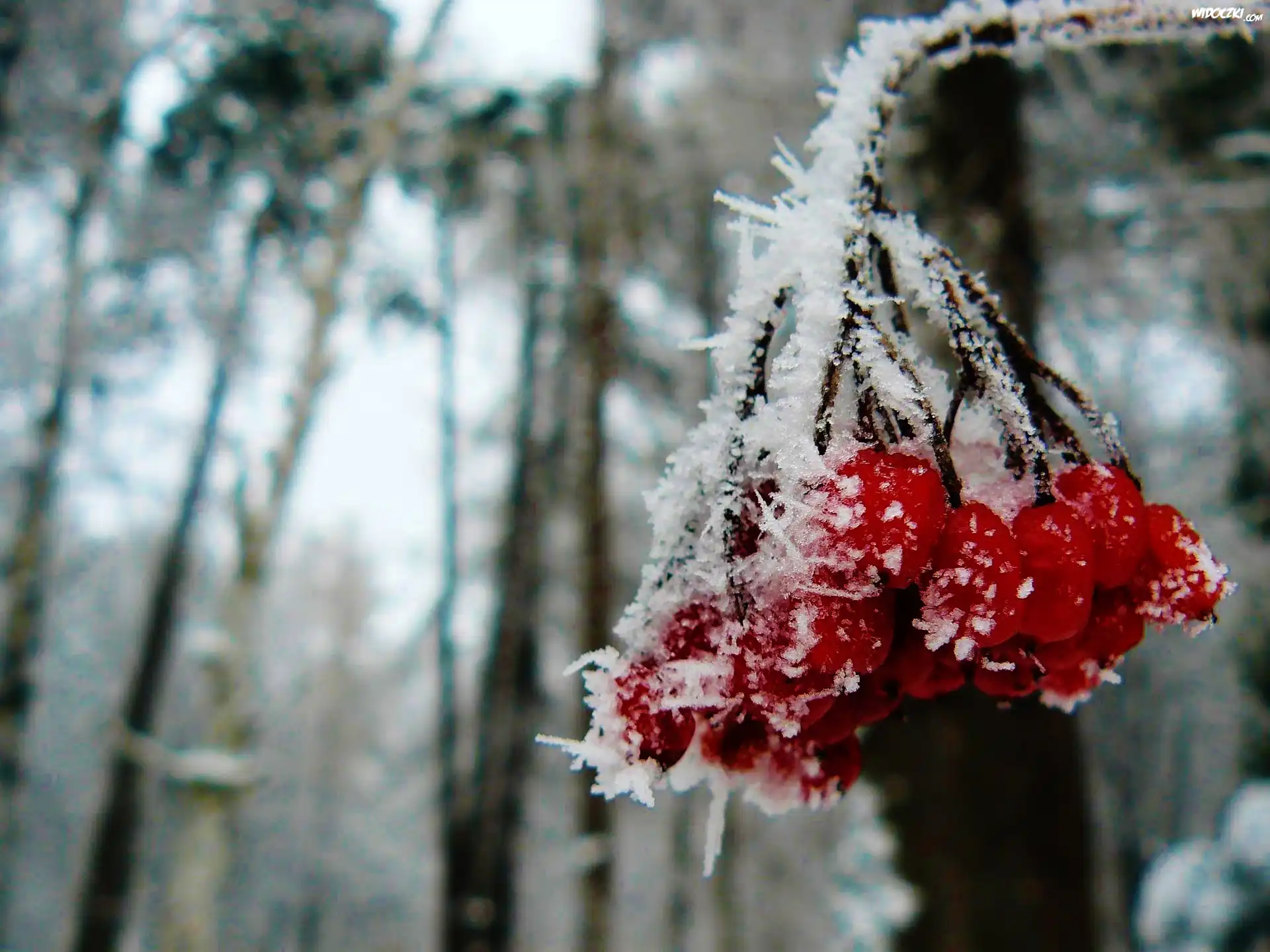 Zdjęcia, Jarzębina, Owoce, Szron