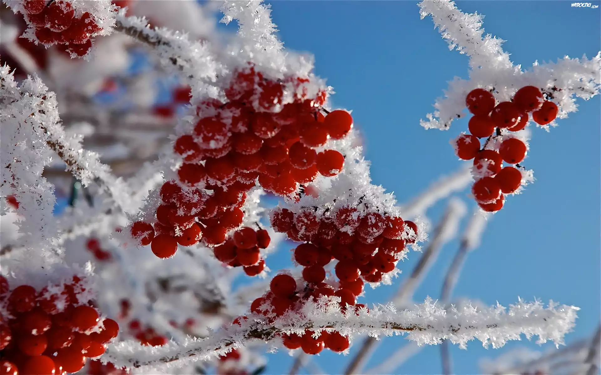Zdjęcia, Oszronione, Owoce, Jarzębiny