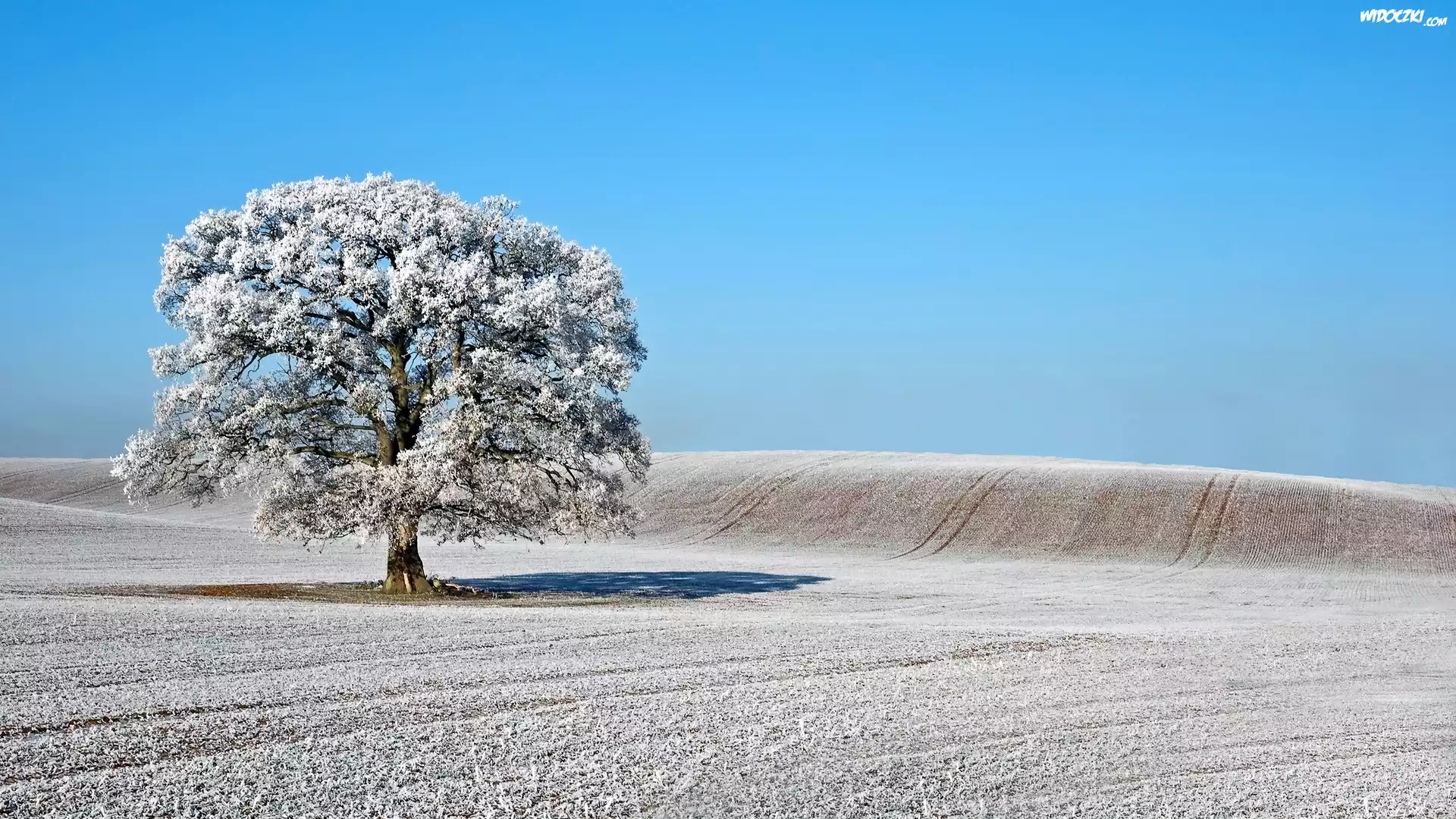 Zdjęcia, Pagórek, Śnieg, Drzewo, Niebieski