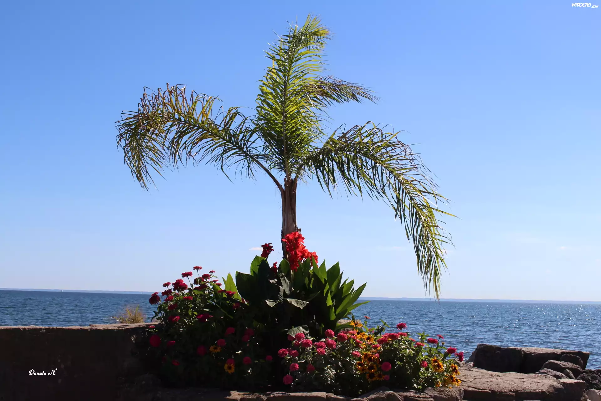 Palma, Kwiaty, Kamienie, Bulwar, Nad Jeziorem