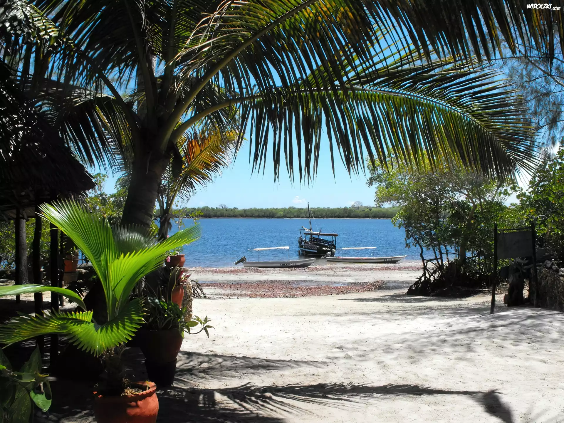 Zdjęcia, Palma, Rzeka, Plaża, Łodzie, Drzewa